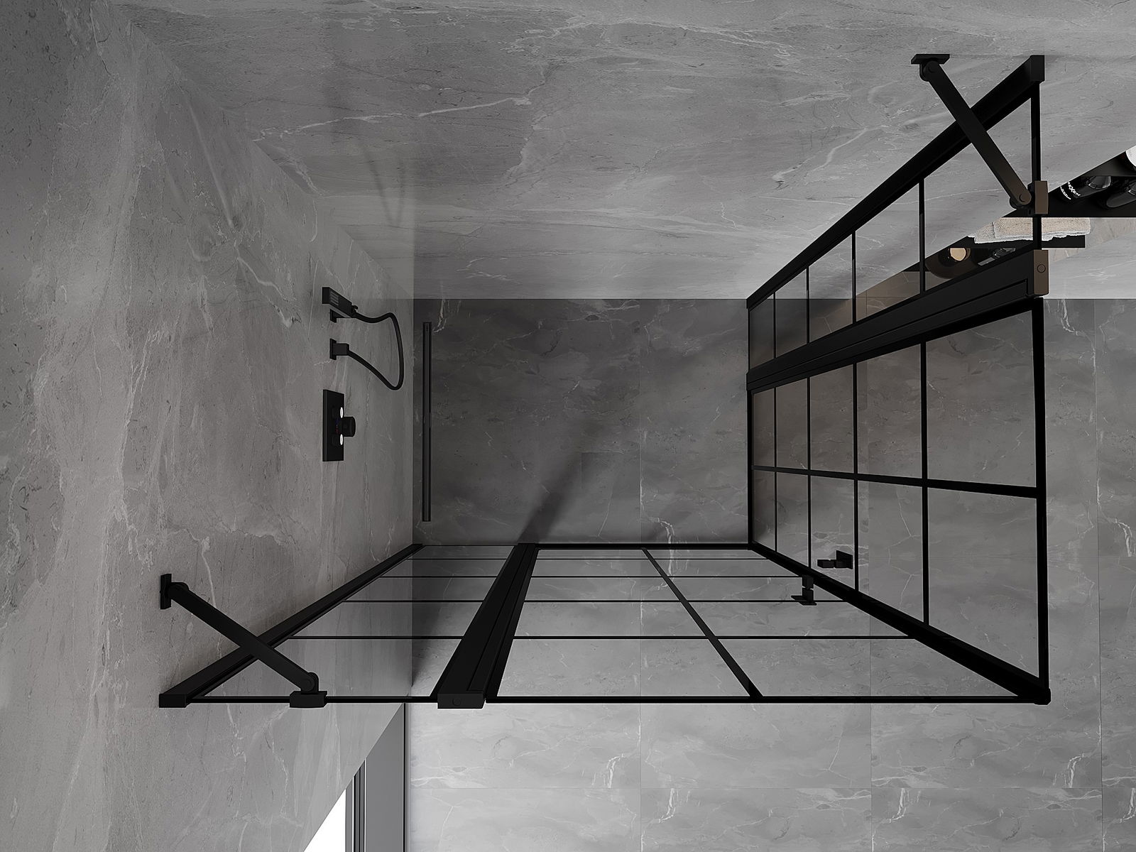 Praktická a pohodlná rukoväť je vyrobená z odolného a pevného kovu. Moderný tvar v kombinácii s povrchovou úpravou prispôsobenou farbe profilov dodáva celku moderný a štýlový vzhľad, zdôrazňujúc estetiku každej kúpeľne.