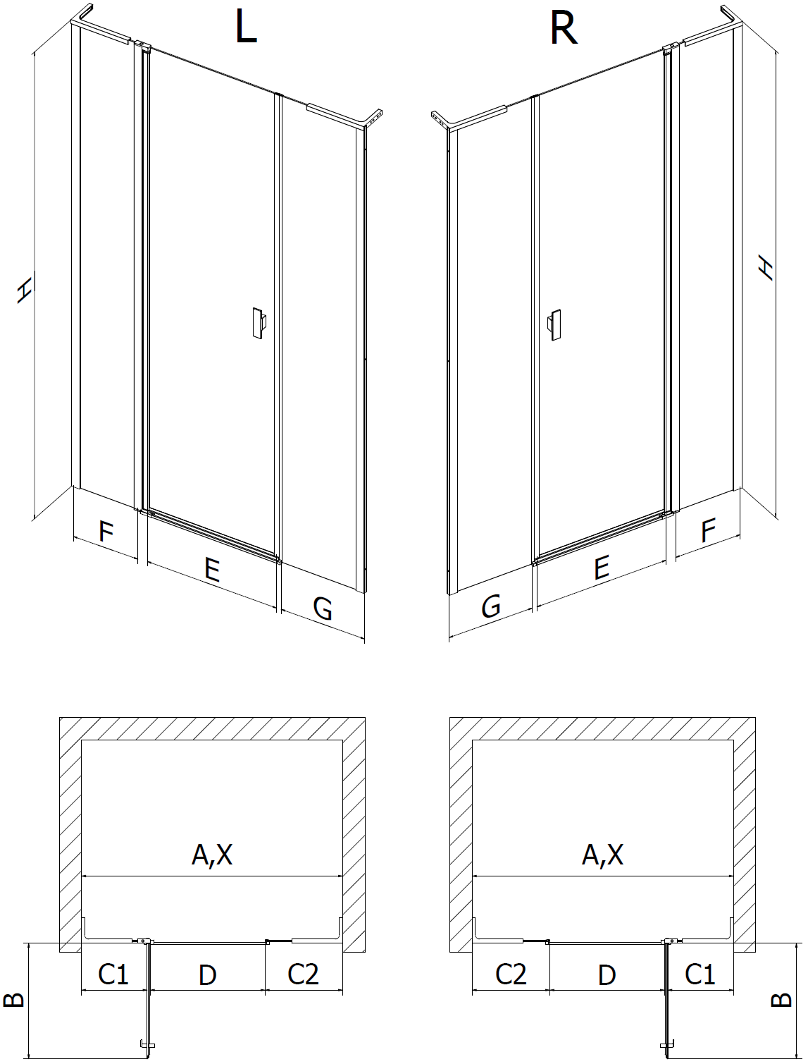 Vďaka použitiu univerzálneho systému montáže môžu byť sprchové dvere namontované na pravú alebo ľavú stranu podľa potreby. Vďaka tomu môžete ľahko naprojektovať sprchu prispôsobenú priestoru kúpeľne.