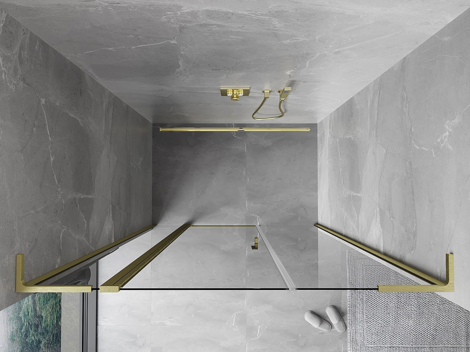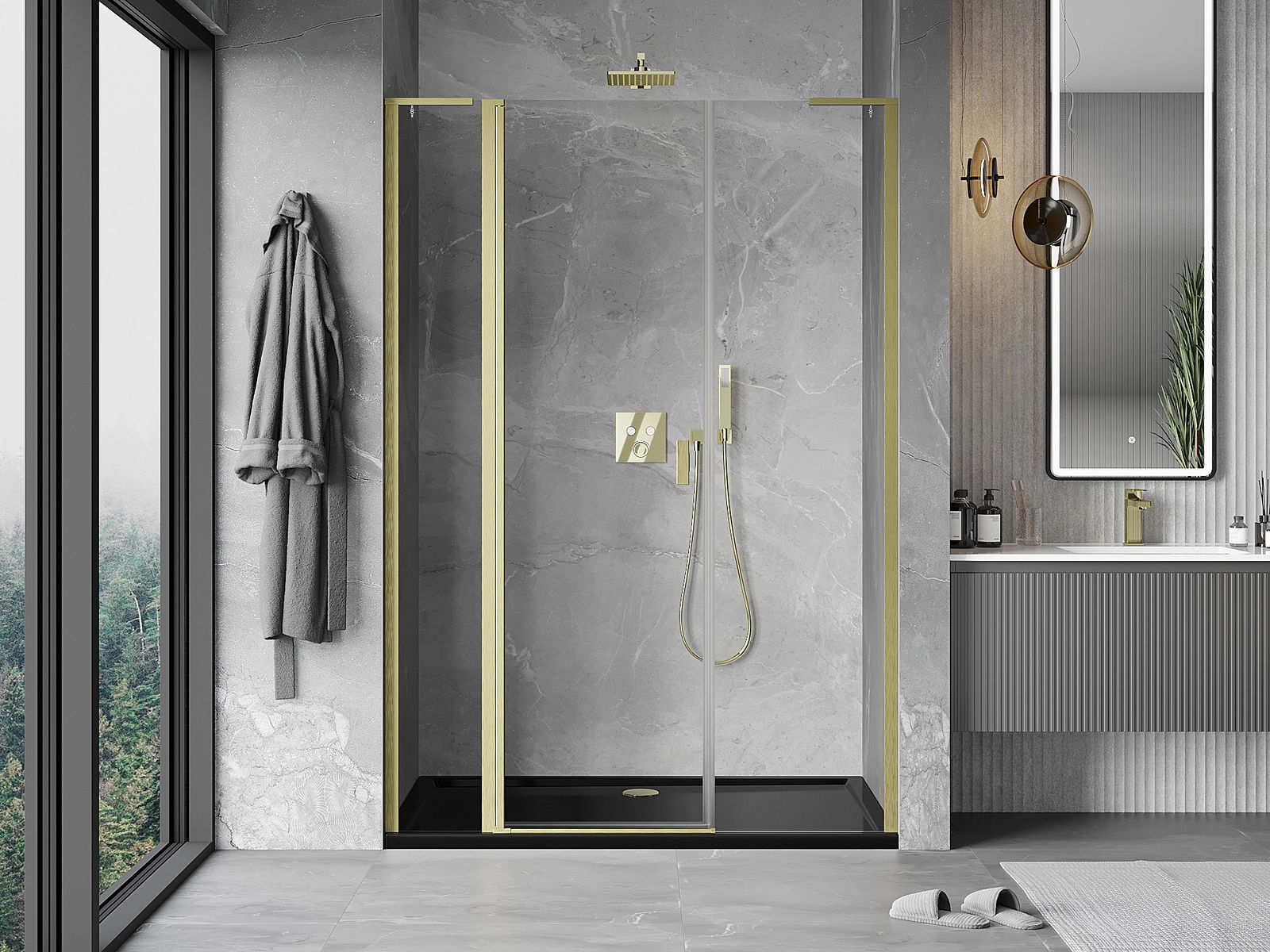 Mexen Mist L, 135 cm sklenené sprchové dvere, číre, zlaté kartáčované - 8A4L-135-001-55-00