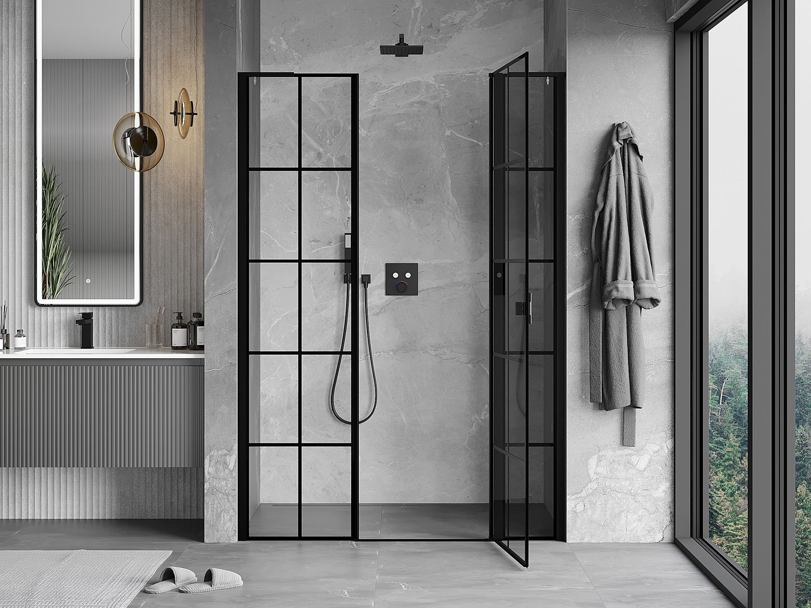 Mexen Mist L sprchové dvere pravé 145 cm, čierna mriežka, čierne - 8A4L-145-001-70-77-P