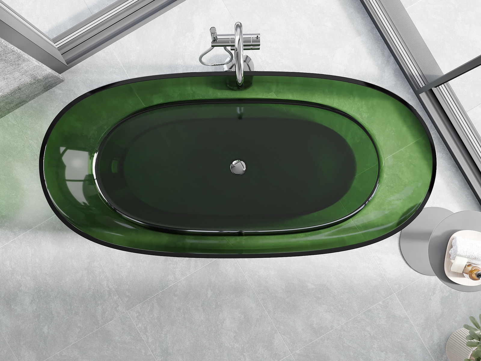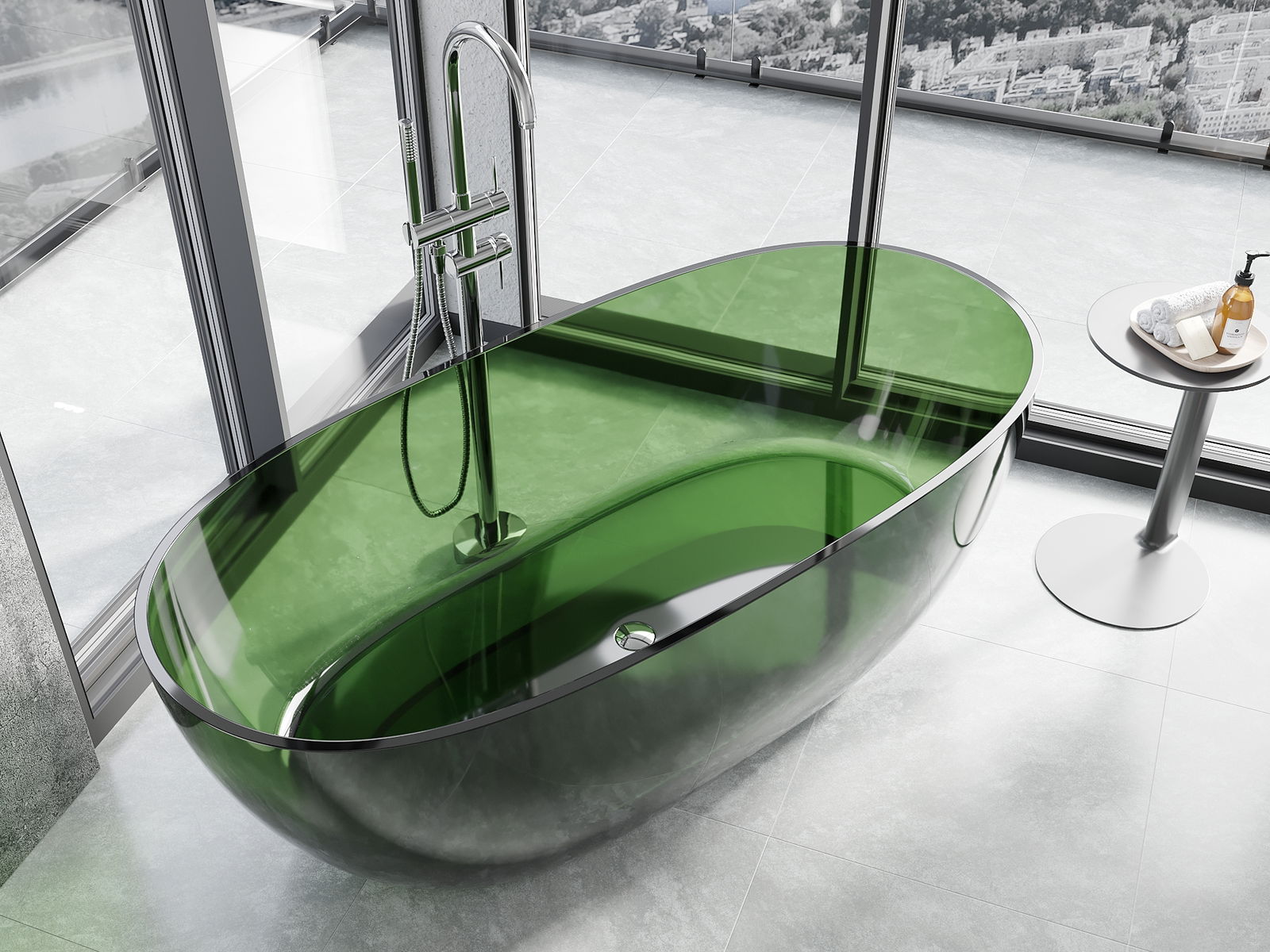 Je to moderný materiál, ktorý kombinuje elegantný vzhľad s vysokou trvanlivosťou. Je odolný proti mechanickému poškodeniu, ľahko sa čistí a je príjemný na dotyk. Transparentná forma a tenký okraj vane jej dodávajú ľahkosť a unikátny charakter, čím vytvárajú efektný prvok v usporiadaní kúpeľne.
