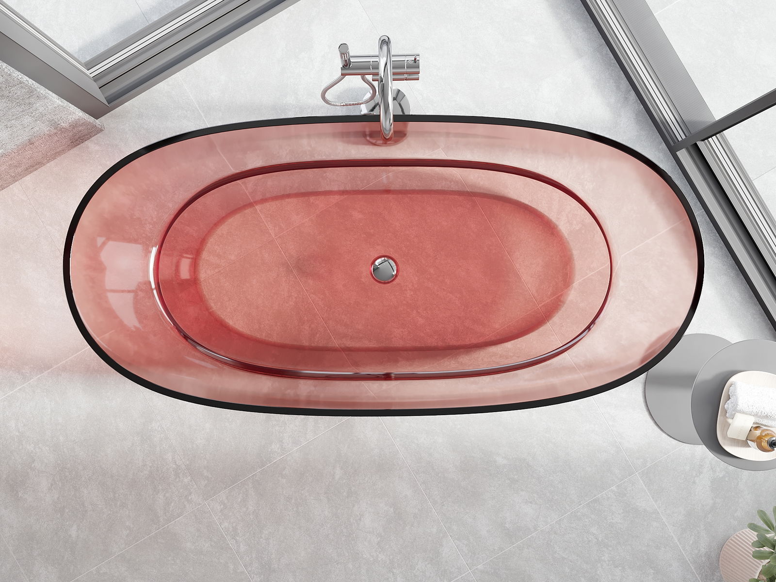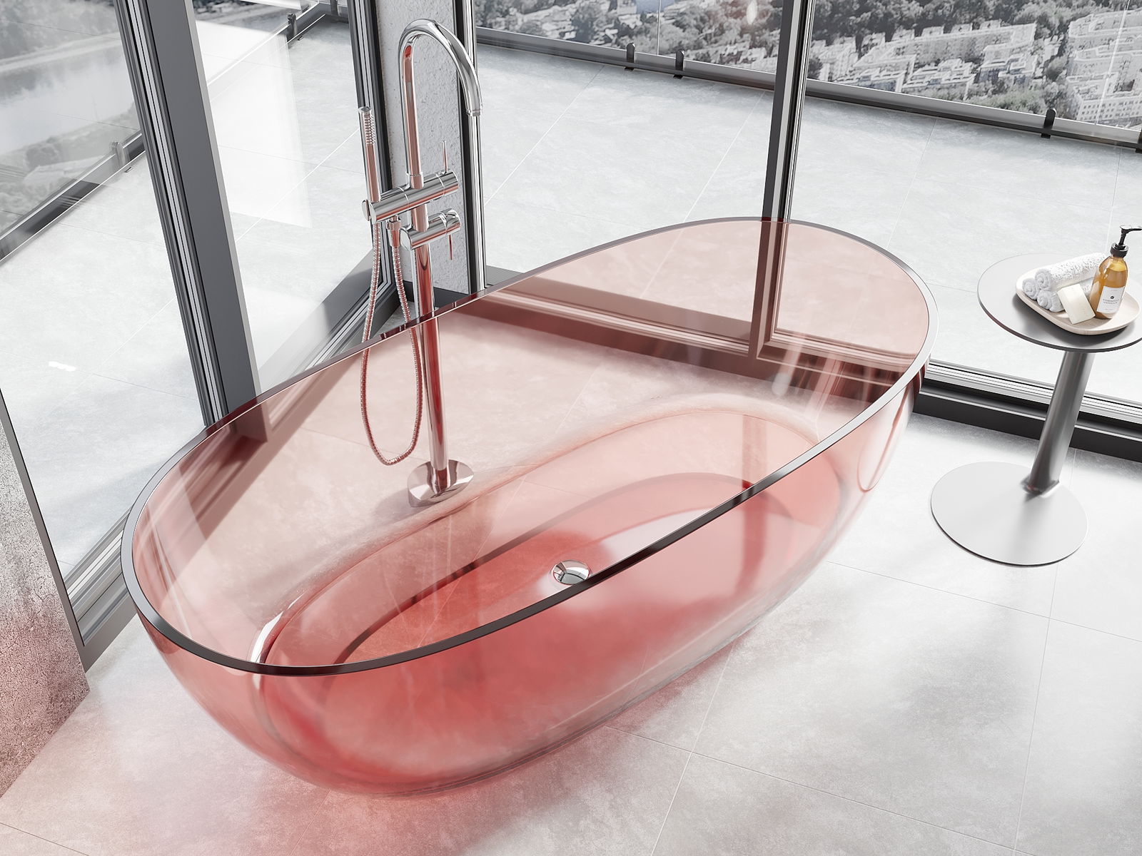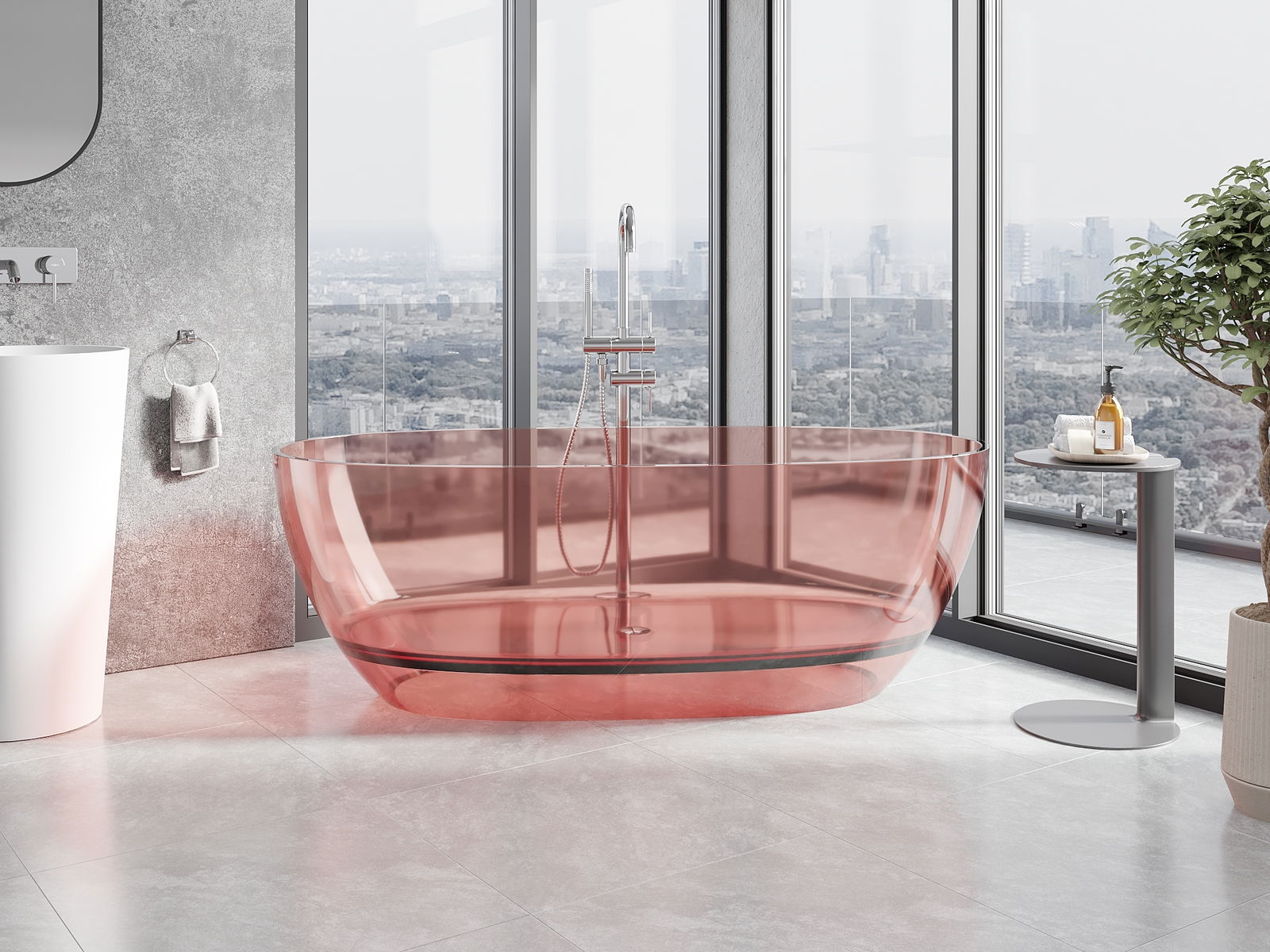 Je to moderný materiál, ktorý kombinuje elegantný vzhľad s vysokou trvanlivosťou. Je odolný proti mechanickému poškodeniu, ľahko sa čistí a je príjemný na dotyk. Transparentná forma a tenký okraj vane jej dodávajú ľahkosť a unikátny charakter, čím vytvárajú efektný prvok v usporiadaní kúpeľne.