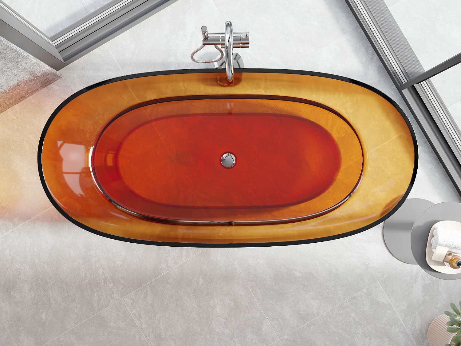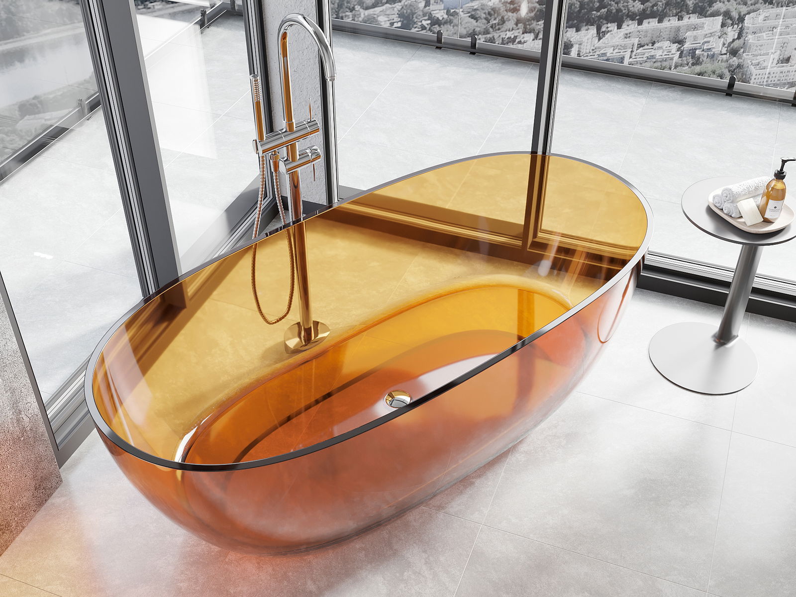 Je to moderný materiál, ktorý kombinuje elegantný vzhľad s vysokou trvanlivosťou. Je odolný proti mechanickému poškodeniu, ľahko sa čistí a je príjemný na dotyk. Transparentná forma a tenký okraj vane jej dodávajú ľahkosť a unikátny charakter, čím vytvárajú efektný prvok v usporiadaní kúpeľne.