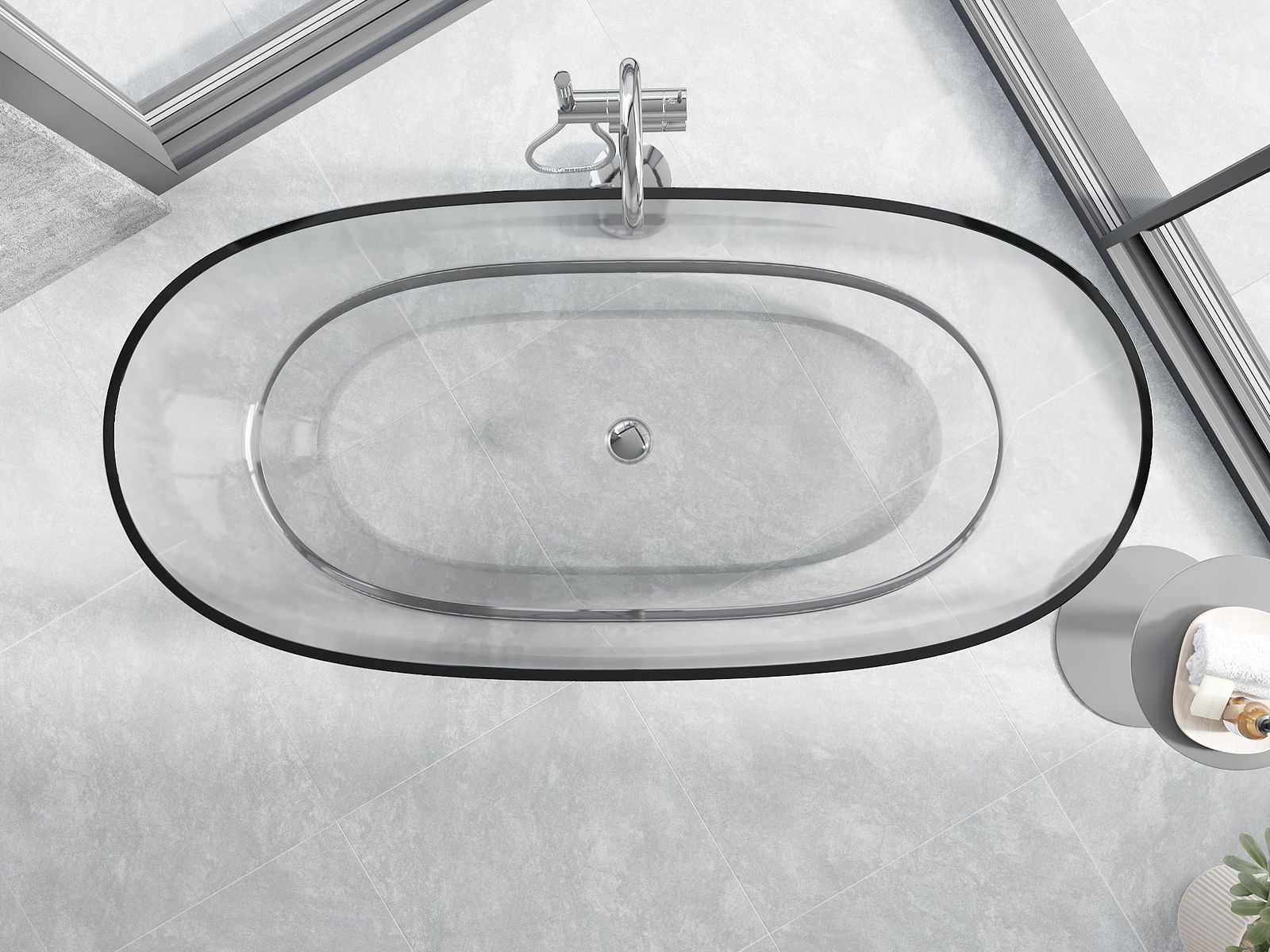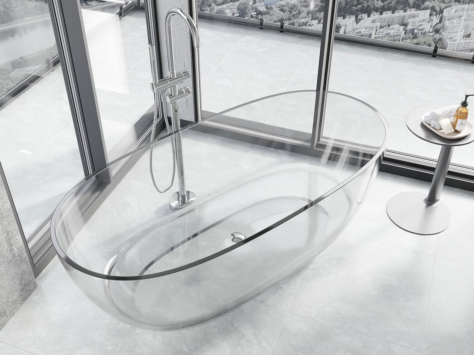 Je to moderný materiál, ktorý kombinuje elegantný vzhľad s vysokou trvanlivosťou. Je odolný proti mechanickému poškodeniu, ľahko sa čistí a je príjemný na dotyk. Transparentná forma a tenký okraj vane jej dodávajú ľahkosť a unikátny charakter, čím vytvárajú efektný prvok v usporiadaní kúpeľne.
