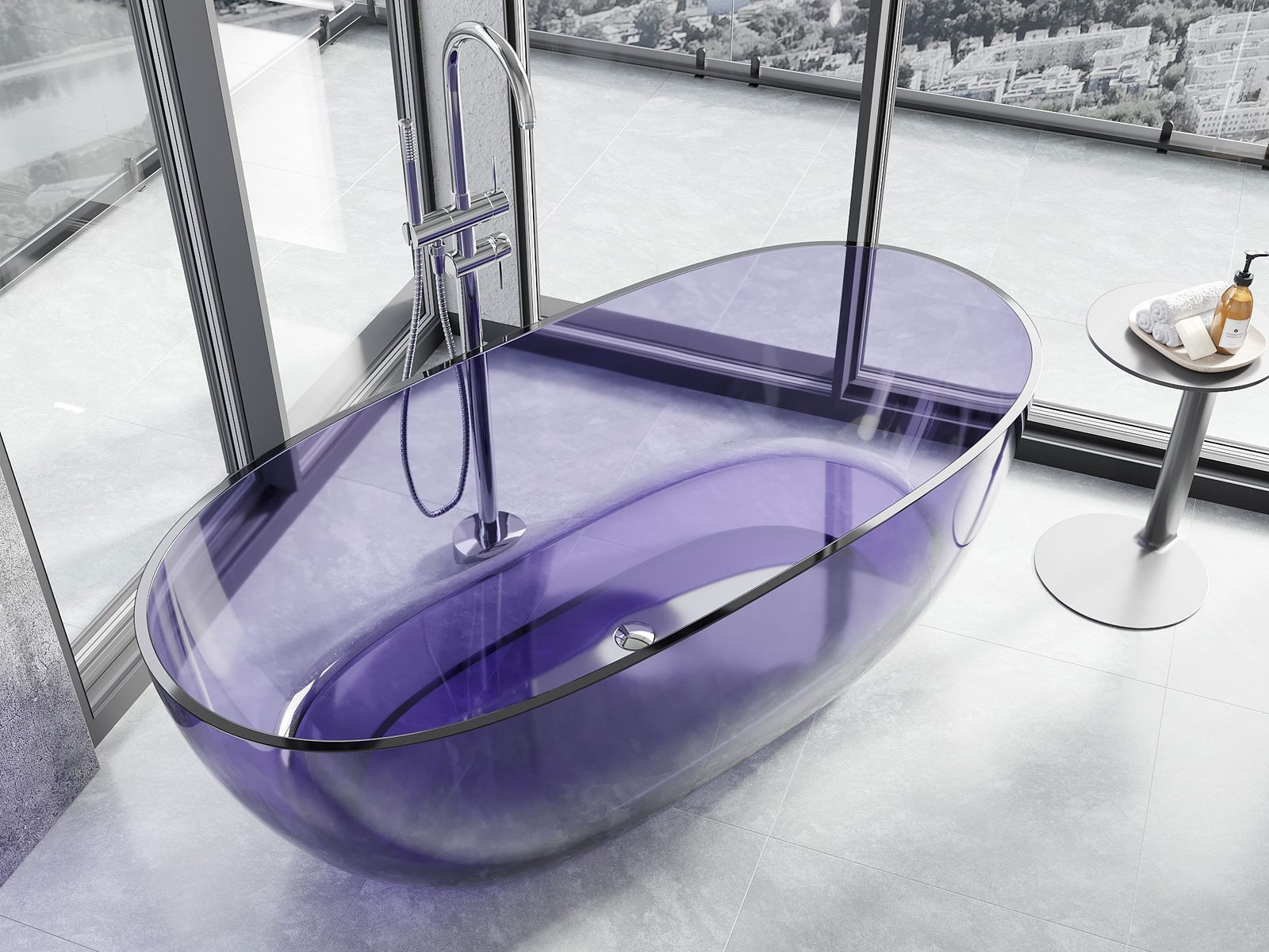Je to moderný materiál, ktorý kombinuje elegantný vzhľad s vysokou trvanlivosťou. Je odolný proti mechanickému poškodeniu, ľahko sa čistí a je príjemný na dotyk. Transparentná forma a tenký okraj vane jej dodávajú ľahkosť a unikátny charakter, čím vytvárajú efektný prvok v usporiadaní kúpeľne.