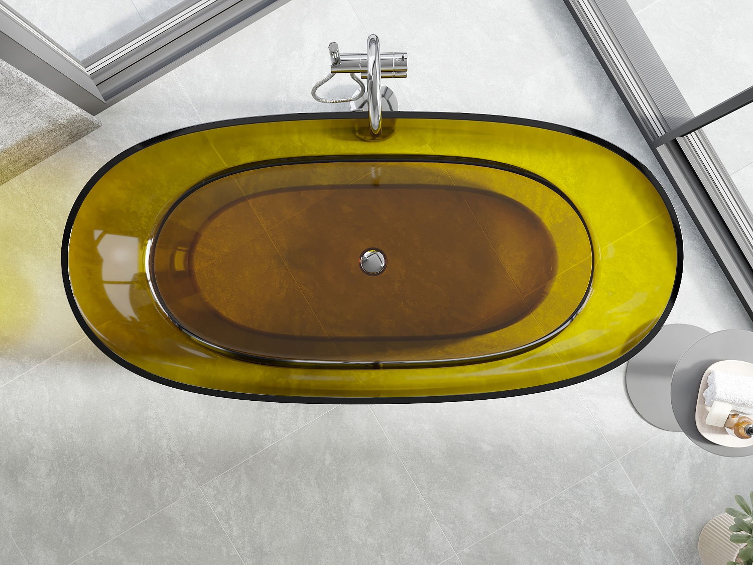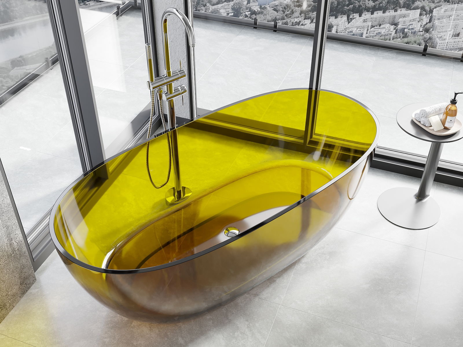 Je to moderný materiál, ktorý kombinuje elegantný vzhľad s vysokou trvanlivosťou. Je odolný proti mechanickému poškodeniu, ľahko sa čistí a je príjemný na dotyk. Transparentná forma a tenký okraj vane jej dodávajú ľahkosť a unikátny charakter, čím vytvárajú efektný prvok v usporiadaní kúpeľne.