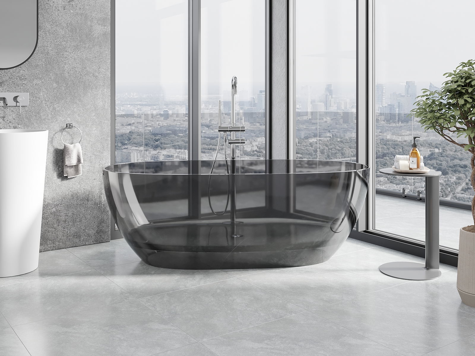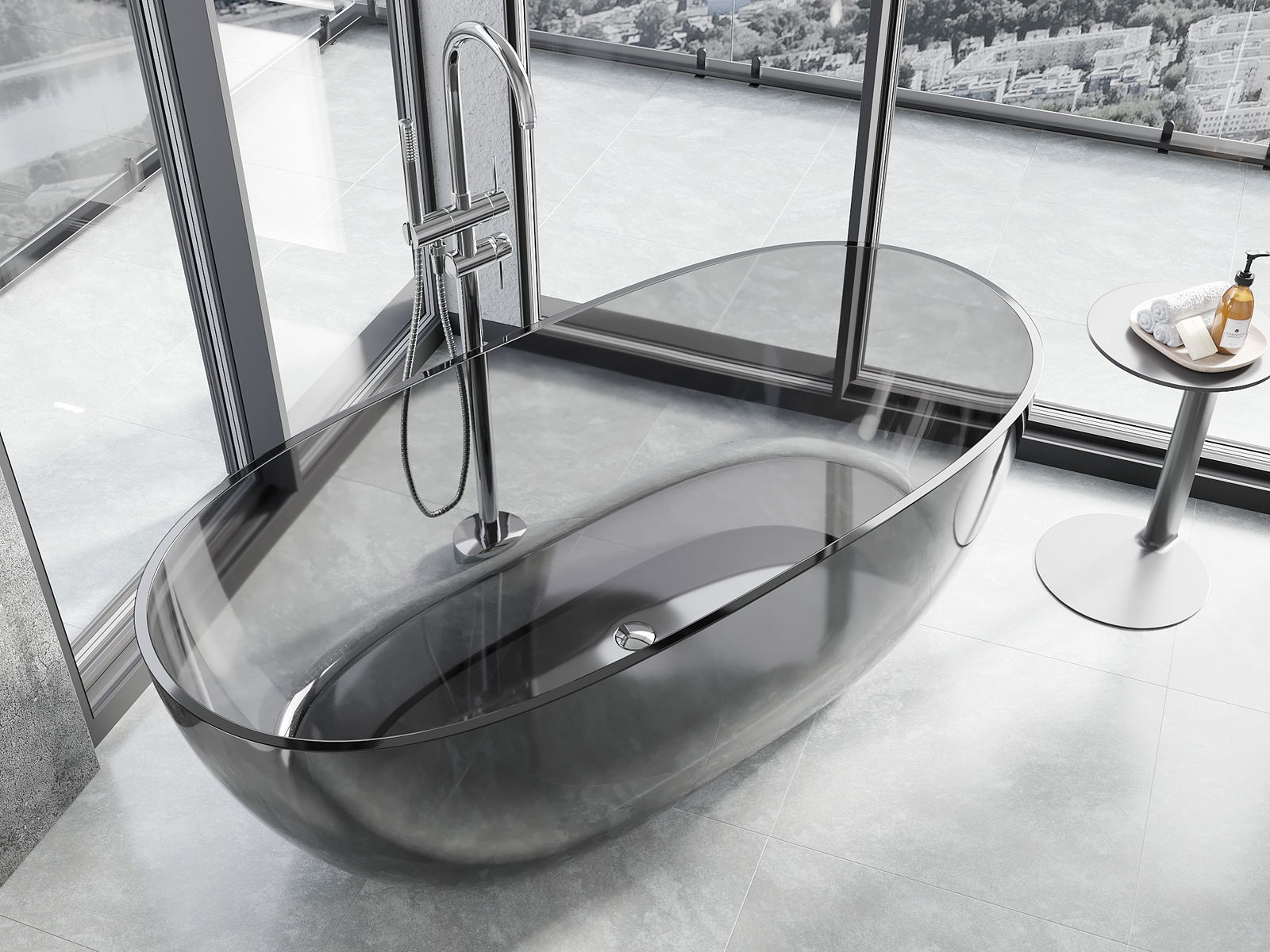 Je to moderný materiál, ktorý kombinuje elegantný vzhľad s vysokou trvanlivosťou. Je odolný proti mechanickému poškodeniu, ľahko sa čistí a je príjemný na dotyk. Transparentná forma a tenký okraj vane jej dodávajú ľahkosť a unikátny charakter, čím vytvárajú efektný prvok v usporiadaní kúpeľne.