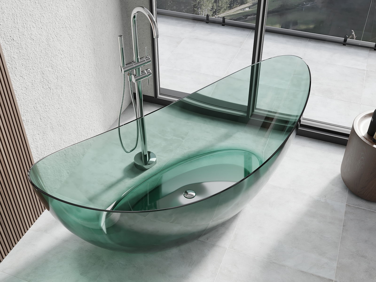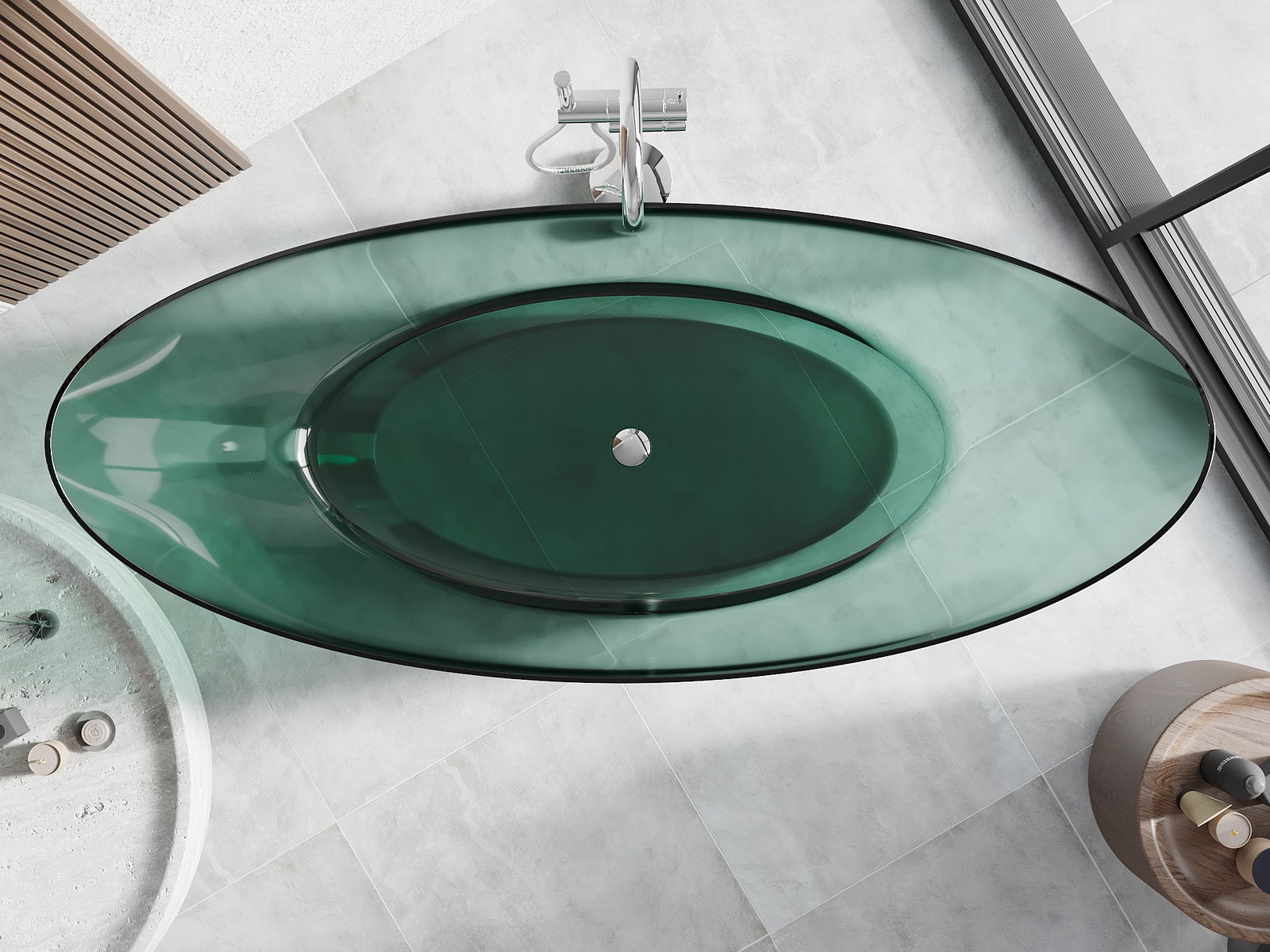 Je to moderný materiál, ktorý kombinuje elegantný vzhľad s vysokou trvanlivosťou. Je odolný proti mechanickému poškodeniu, ľahko sa čistí a je príjemný na dotyk. Transparentná forma a tenký okraj vane jej dodávajú ľahkosť a unikátny charakter, čím vytvárajú efektný prvok v usporiadaní kúpeľne.