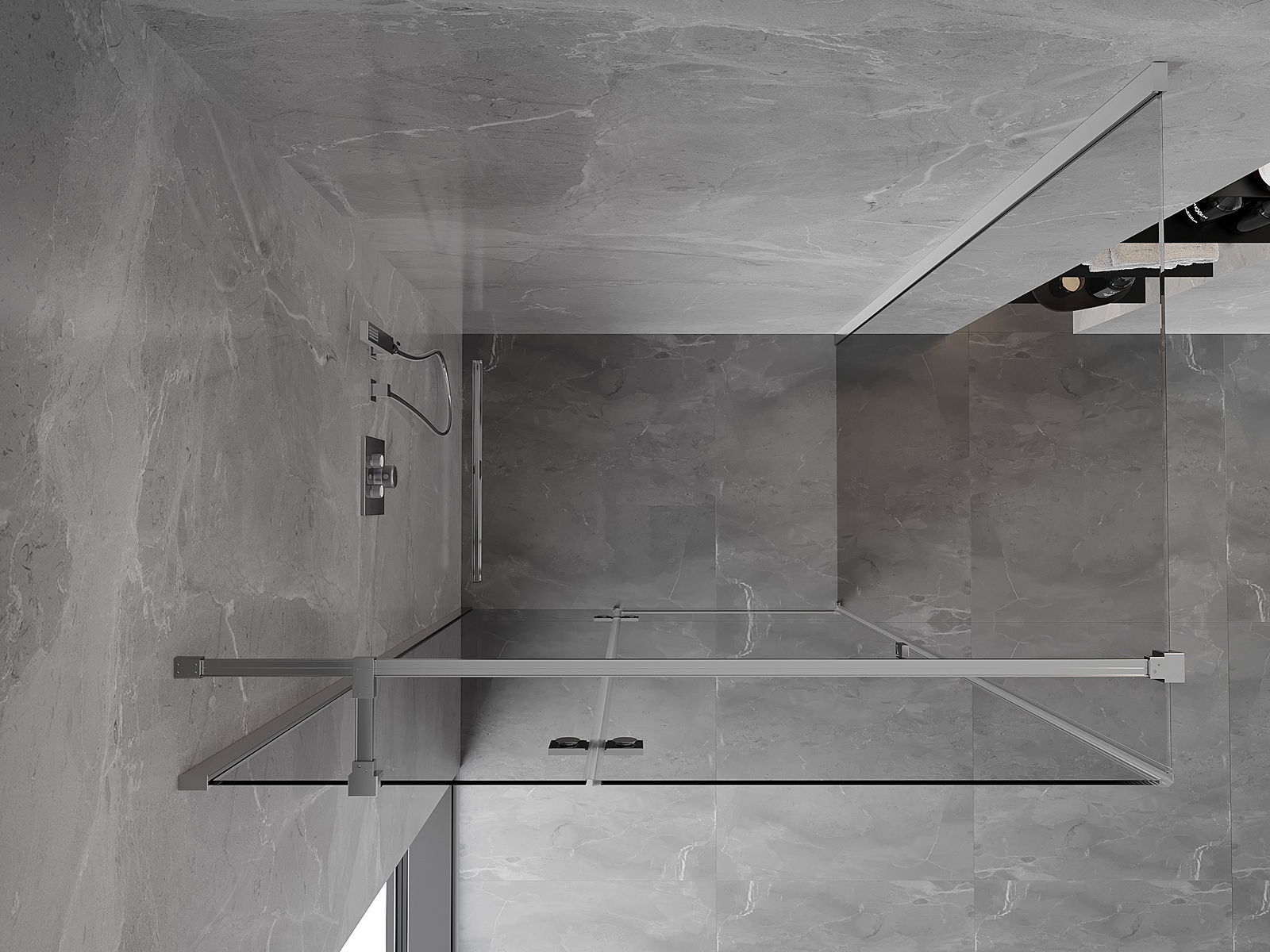 Praktická a pohodlná rukoväť je vyrobená z odolného a pevného kovu. Moderný tvar v kombinácii s povrchovou úpravou prispôsobenou farbe profilov dodáva celku moderný a štýlový vzhľad, zdôrazňujúc estetiku každej kúpeľne.