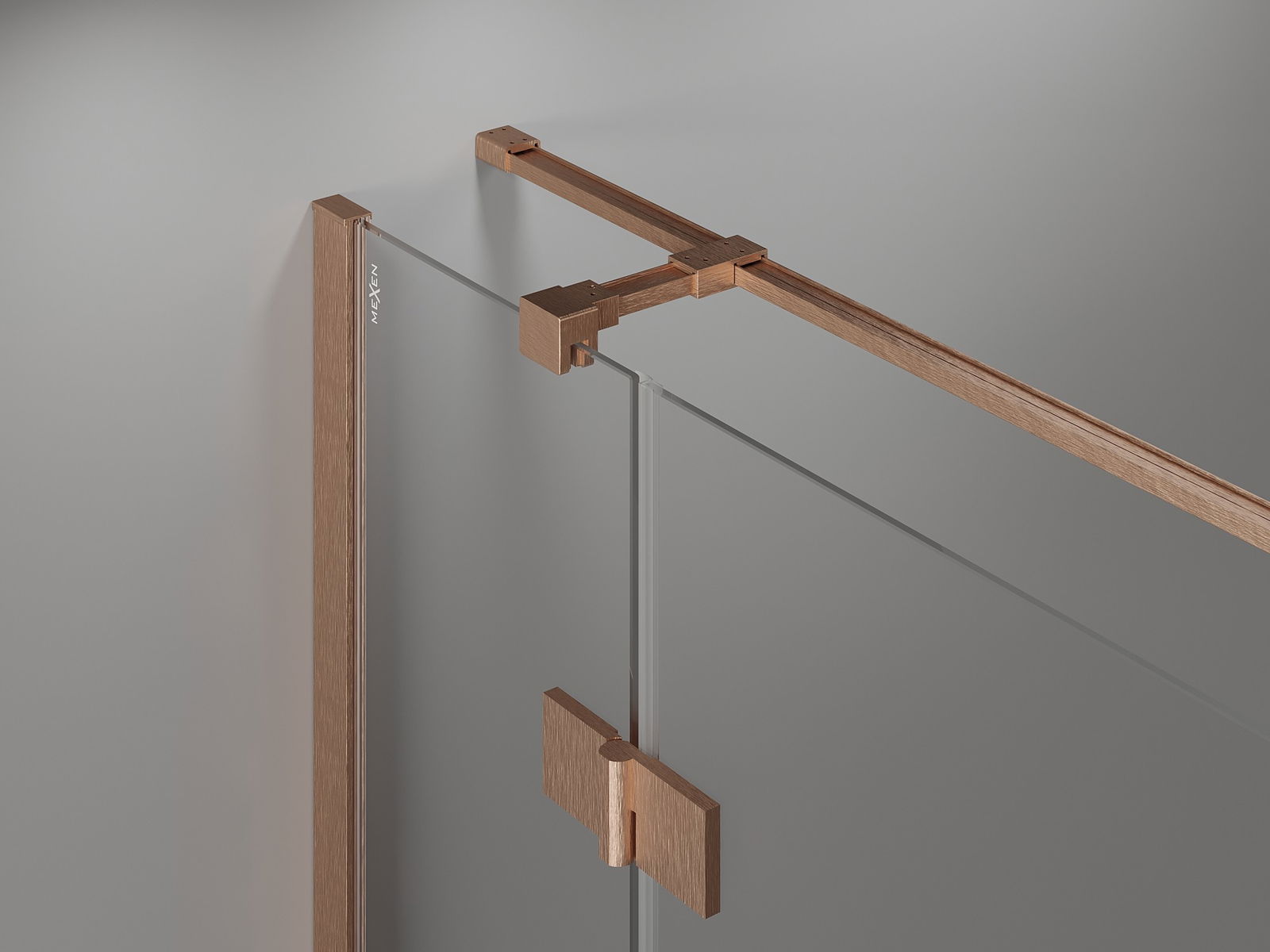 Praktická a pohodlná rukoväť je vyrobená z odolného a pevného kovu. Moderný tvar v kombinácii s povrchovou úpravou prispôsobenou farbe profilov dodáva celku moderný a štýlový vzhľad, zdôrazňujúc estetiku každej kúpeľne.