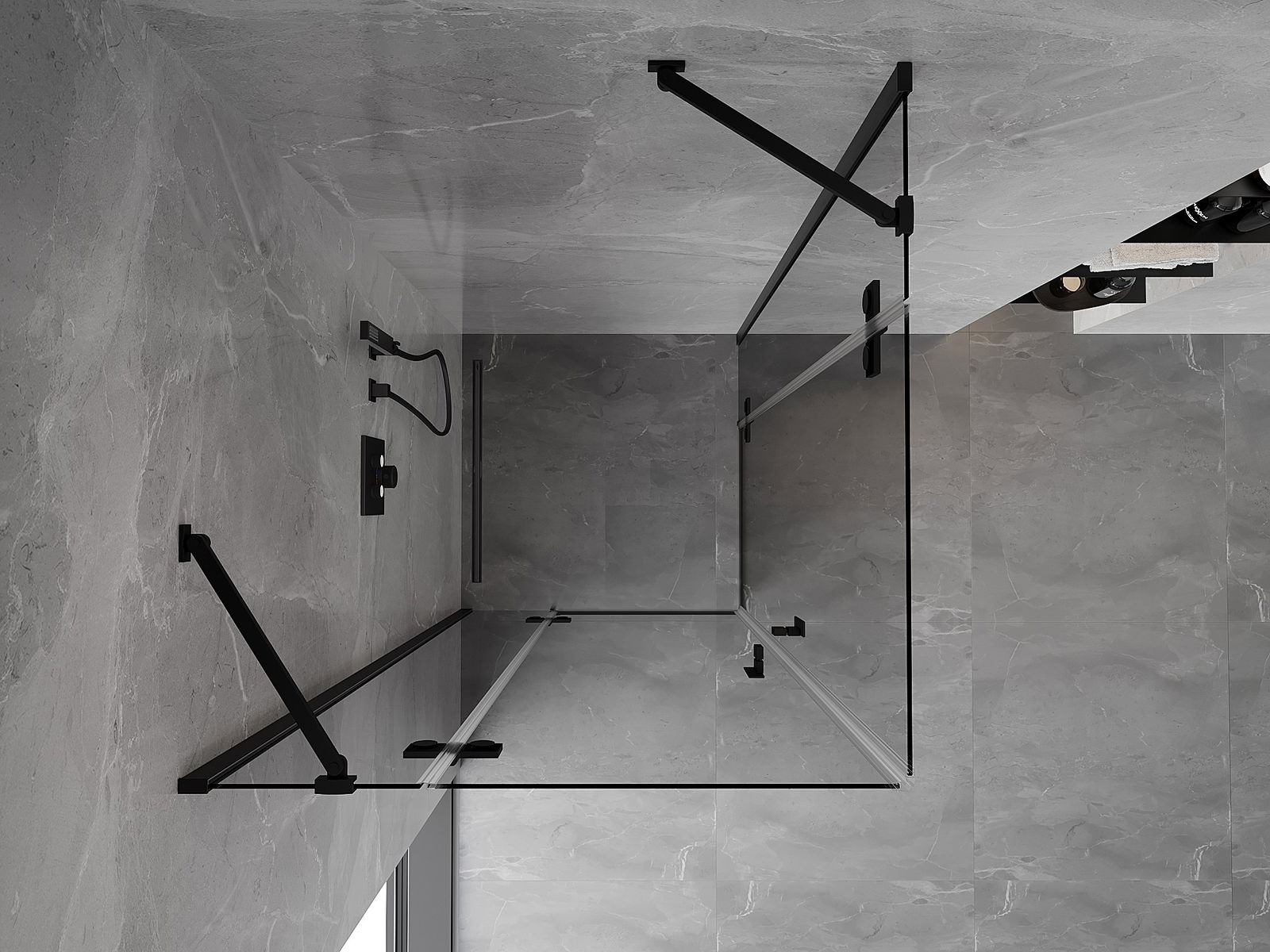 Praktická a pohodlná rukoväť je vyrobená z odolného a pevného kovu. Moderný tvar v kombinácii s povrchovou úpravou prispôsobenou farbe profilov dodáva celku moderný a štýlový vzhľad, zdôrazňujúc estetiku každej kúpeľne.