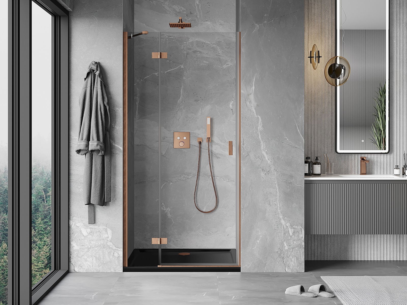 Mexen Mist-H sprchové dvere výklopné ľavé 120 cm, transparentné, brúsená meď - 8A5-120-000-65-00-L