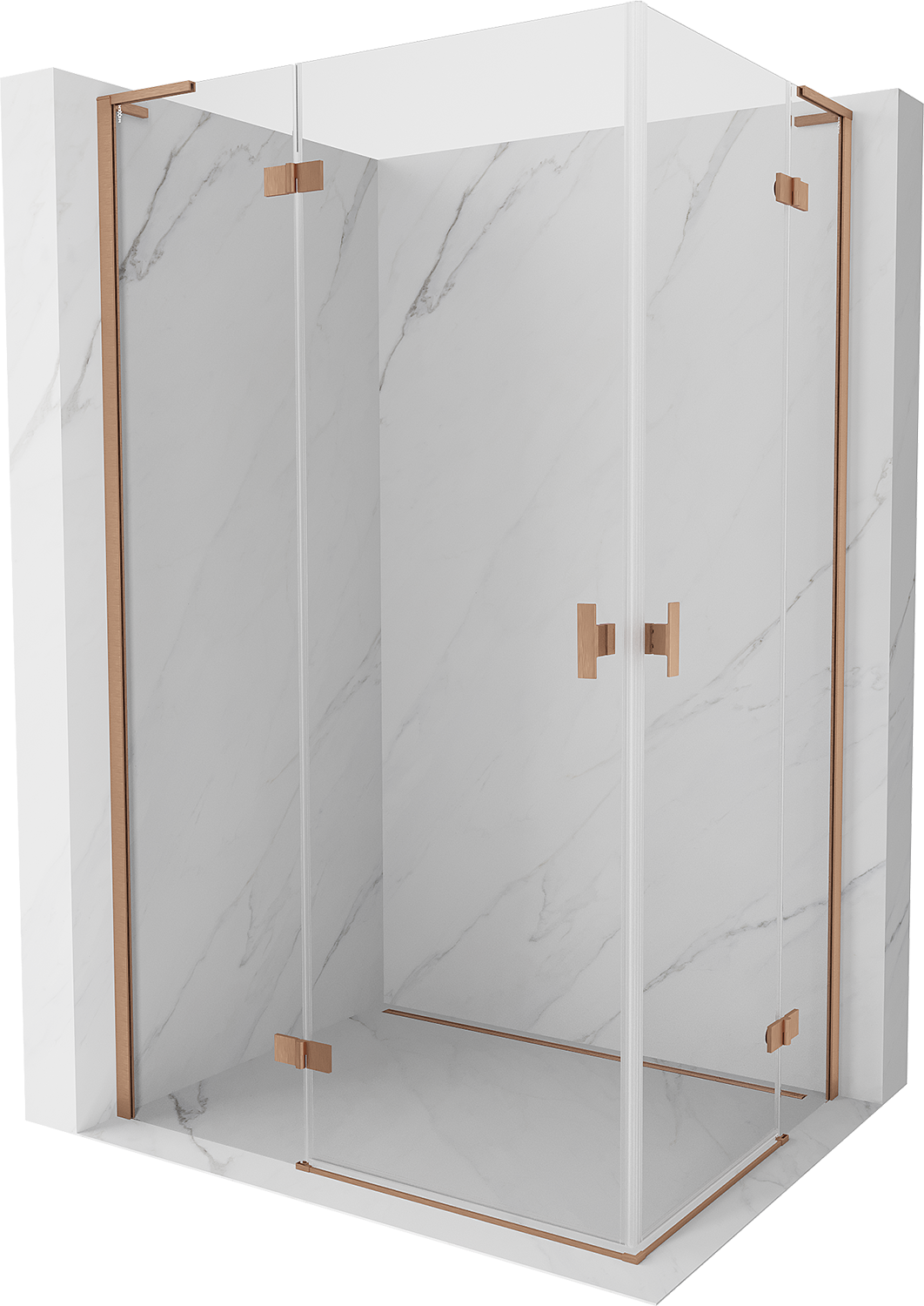 Mexen Mist-H L Duo sprchová kabína výklopná ľavá 105 x 70 cm, transparentná, brúsená meď - 8A5L-105L-070P-65-00