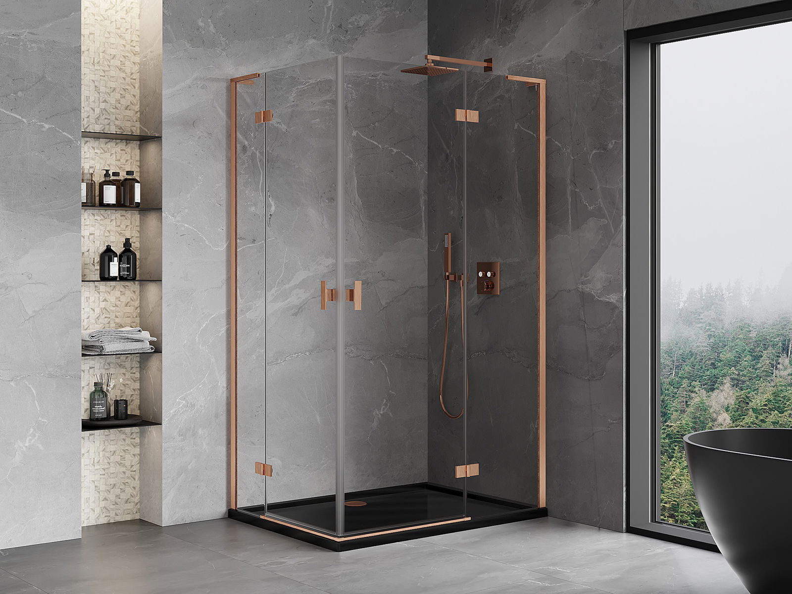 Praktická a pohodlná rukoväť je vyrobená z odolného a pevného kovu. Moderný tvar v kombinácii s povrchovou úpravou prispôsobenou farbe profilov dodáva celku moderný a štýlový vzhľad, zdôrazňujúc estetiku každej kúpeľne.
