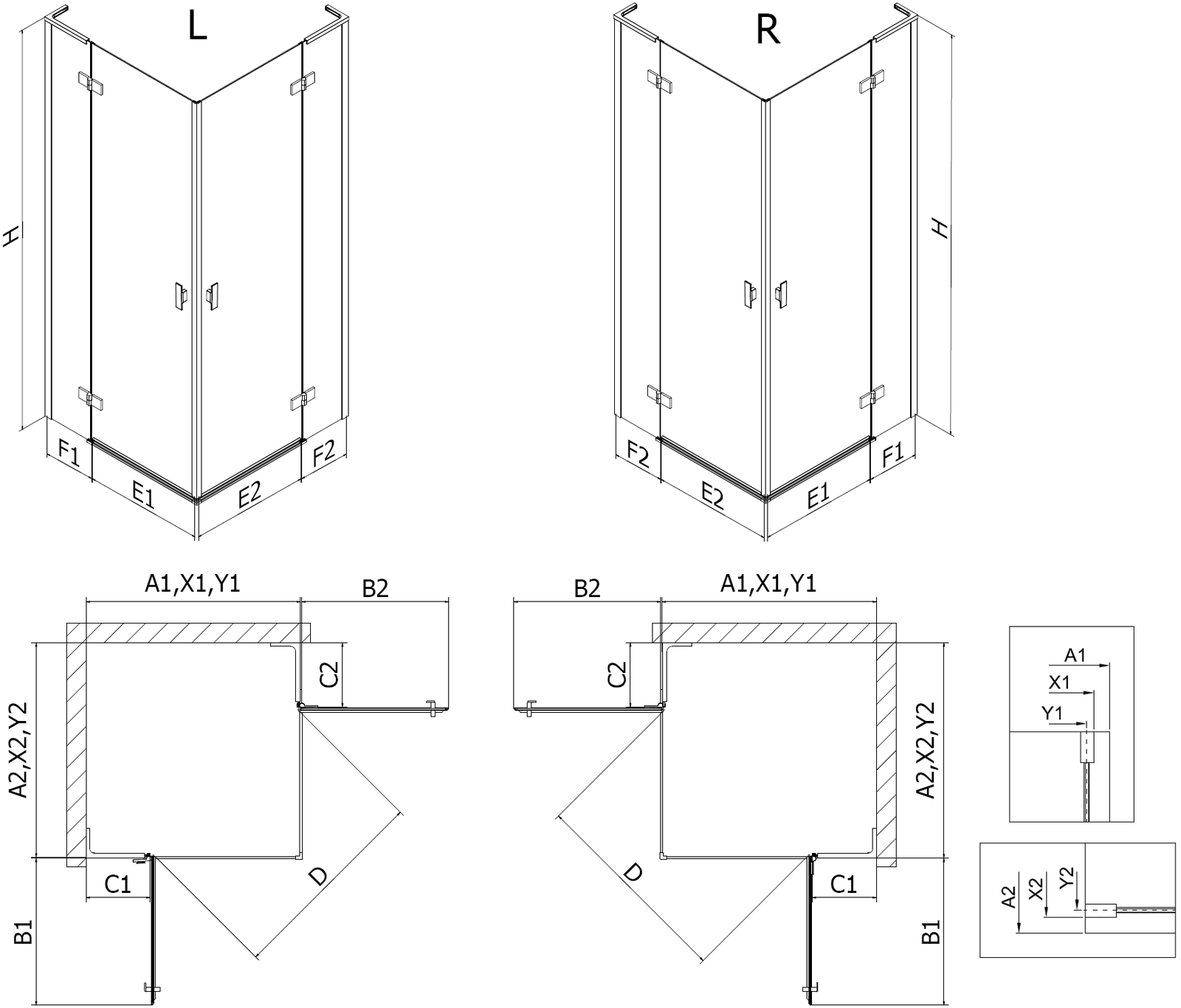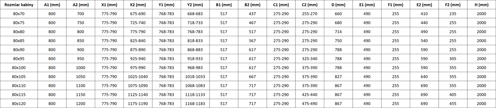 Sprchové kúty, dvere a steny sú štandardne prispôsobené na montáž na sprchové vaničky určitých rozmerov. Práve tieto rozmery sú uvedené v názve alebo popise produktu. Je však potrebné mať na pamäti, že skutočné rozmery prvkov sa môžu mierne líšiť od nominálnych hodnôt. V prípade plánovanej montáže priamo na podlahu sa odporúča dôkladne skontrolovať vonkajšie rozmery a rozmiestnenie prvkov podľa technického nákresu.