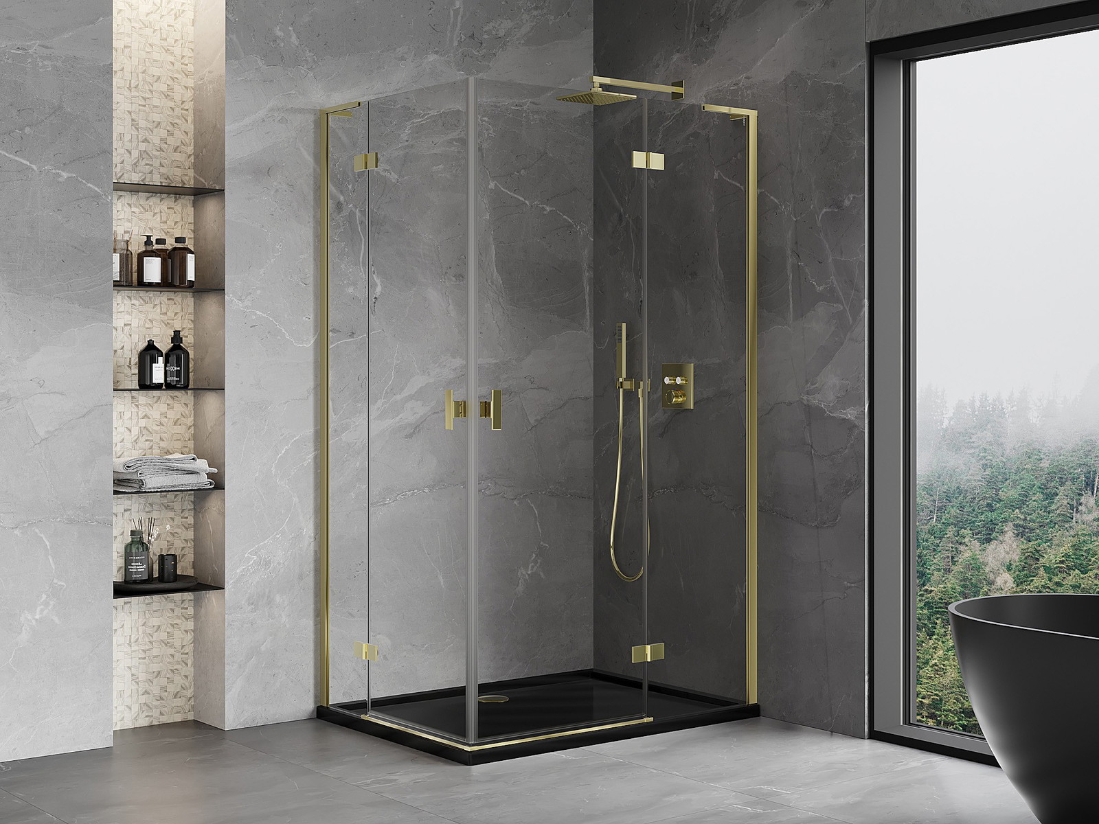 Mexen Mist-H L Duo sprchová kabína otváracia pravá 80 x 105 cm, transparentná, zlatá - 8A5L-080L-105P-50-00