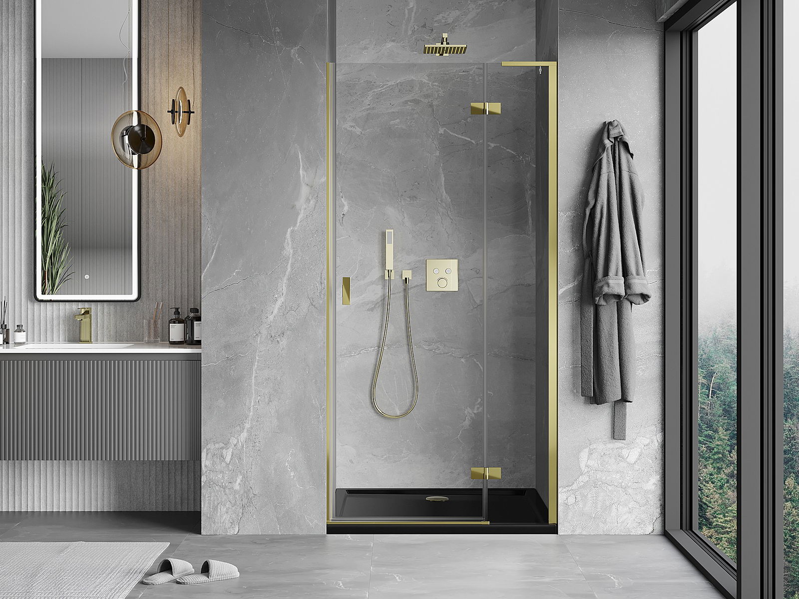 Mexen Mist-H L sprchové dvere výklopné pravé 75 cm, priehľadné, zlaté - 8A5L-075-000-50-00-P