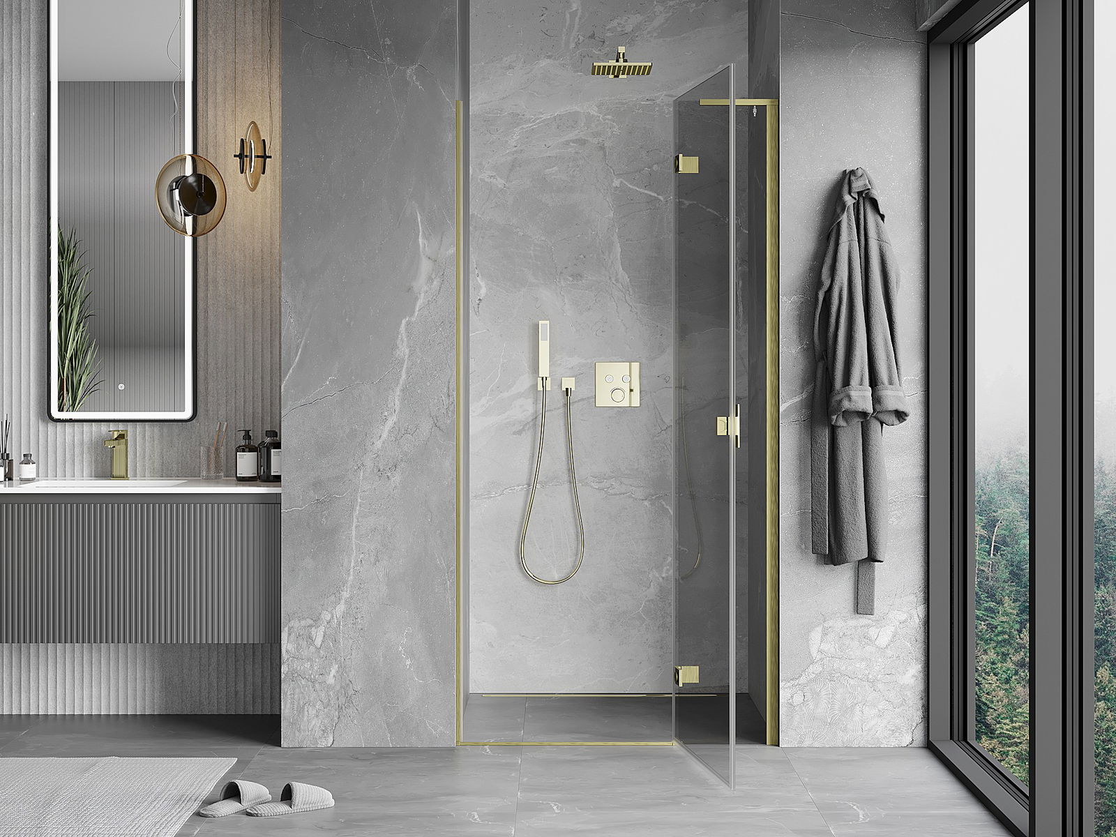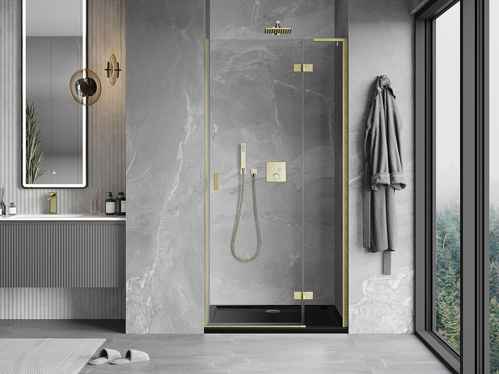 Mosadzné závesy v rovine so sklom