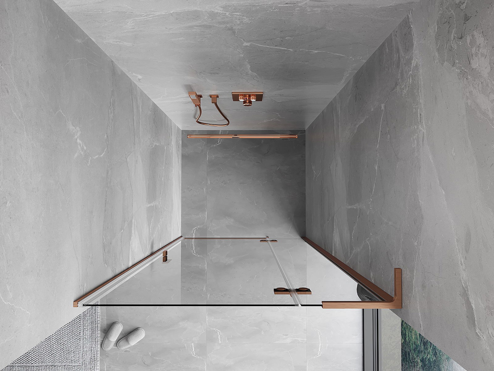 Praktická a pohodlná rukoväť je vyrobená z odolného a pevného kovu. Moderný tvar v kombinácii s povrchovou úpravou prispôsobenou farbe profilov dodáva celku moderný a štýlový vzhľad, zdôrazňujúc estetiku každej kúpeľne.