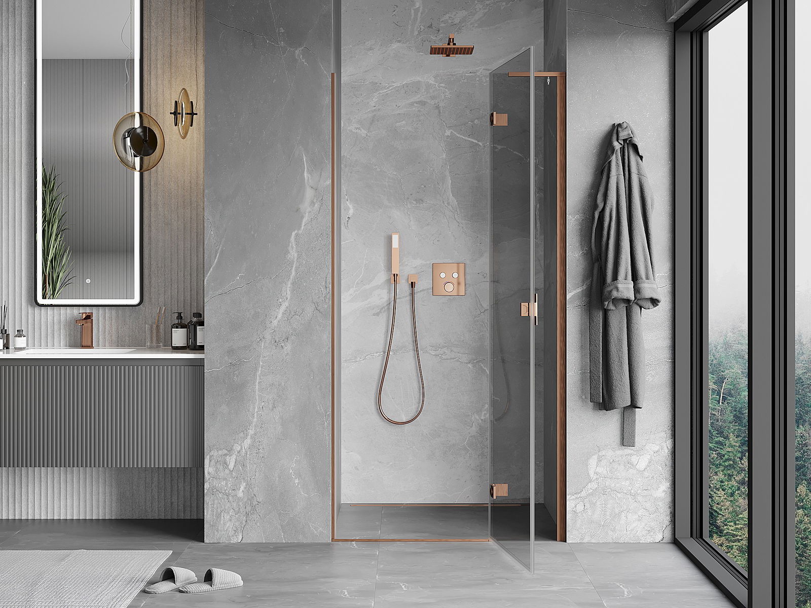 Praktická a pohodlná rukoväť je vyrobená z odolného a pevného kovu. Moderný tvar v kombinácii s povrchovou úpravou prispôsobenou farbe profilov dodáva celku moderný a štýlový vzhľad, zdôrazňujúc estetiku každej kúpeľne.