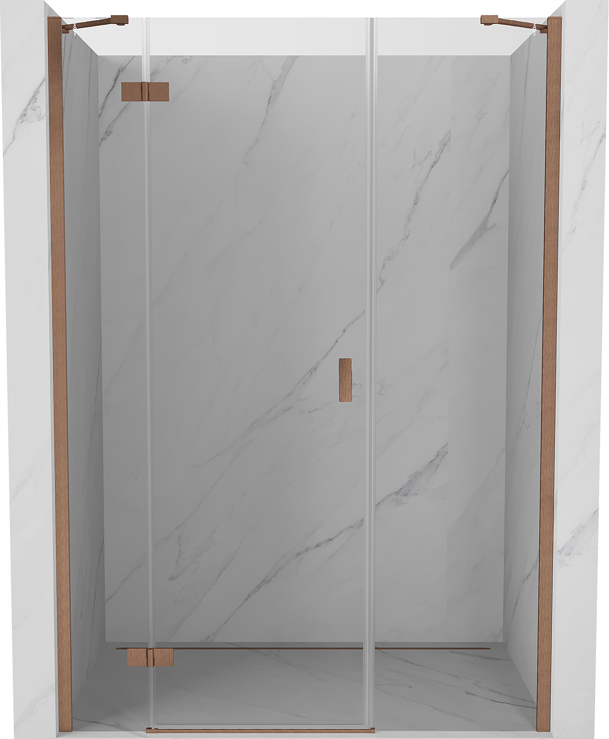 Praktická a pohodlná rukoväť je vyrobená z odolného a pevného kovu. Moderný tvar v kombinácii s povrchovou úpravou prispôsobenou farbe profilov dodáva celku moderný a štýlový vzhľad, zdôrazňujúc estetiku každej kúpeľne.