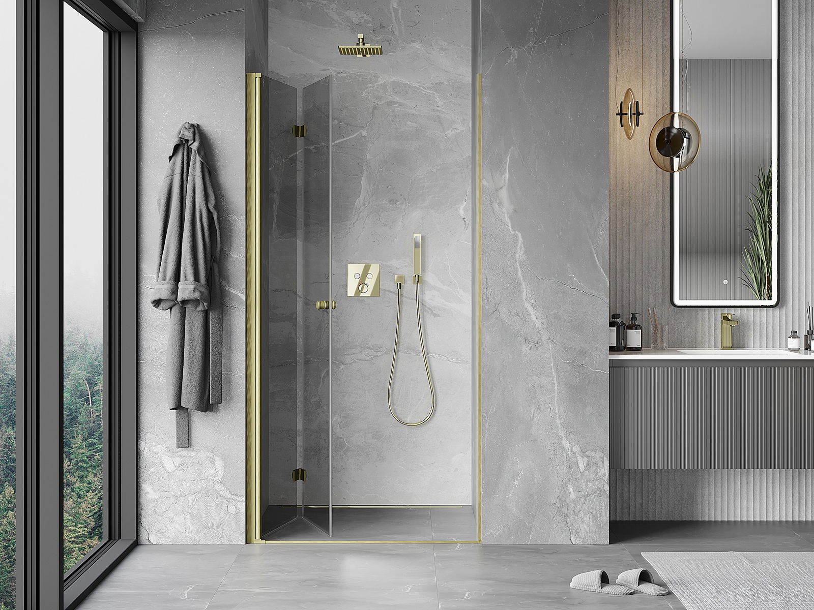 Mexen Mist-F skladacie sprchové dvere ľavé 70 cm, transparentné, zlaté kartáčované - 8A6-070-000-55-00-L