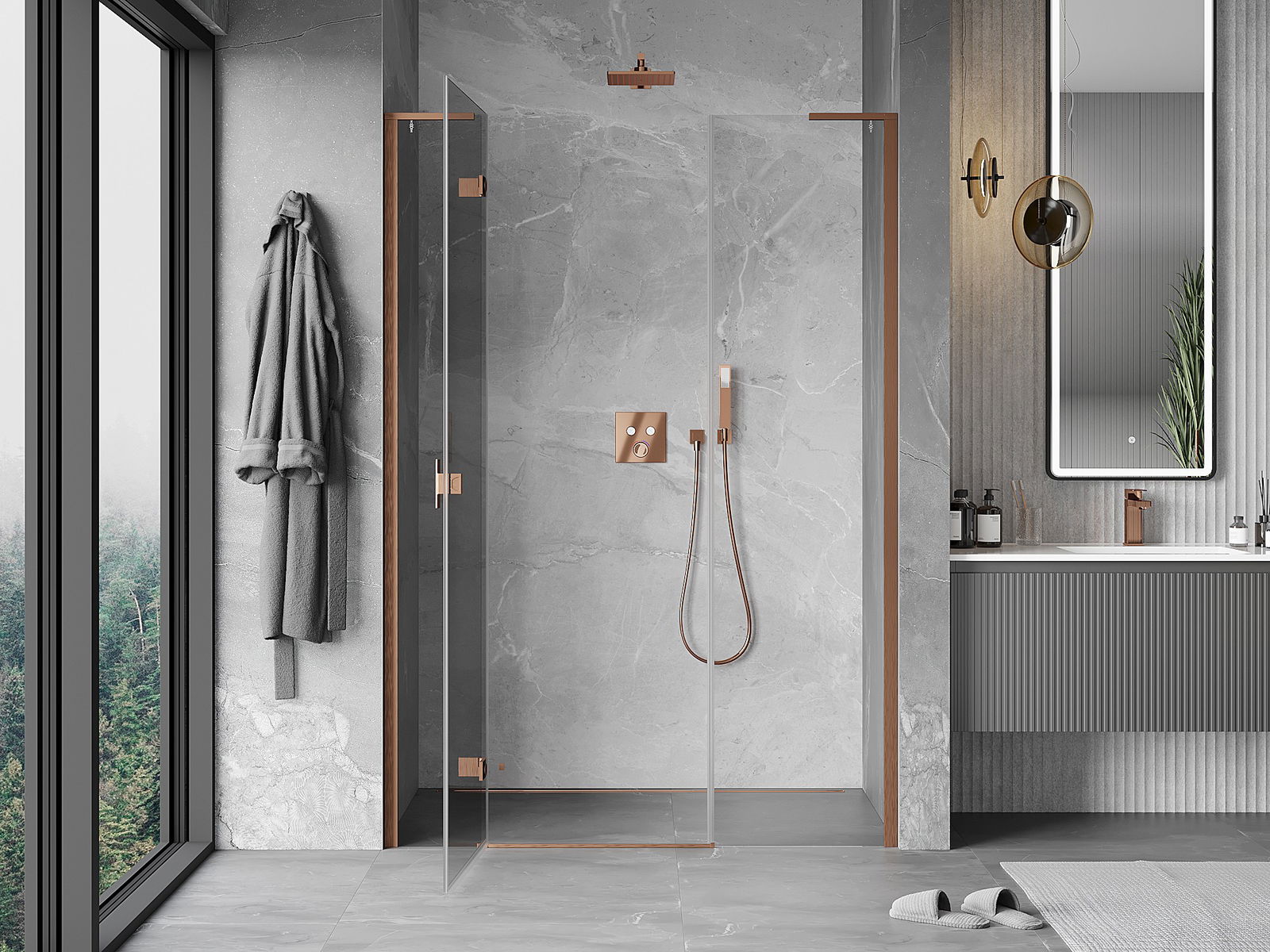 Praktická a pohodlná rukoväť je vyrobená z odolného a pevného kovu. Moderný tvar v kombinácii s povrchovou úpravou prispôsobenou farbe profilov dodáva celku moderný a štýlový vzhľad, zdôrazňujúc estetiku každej kúpeľne.