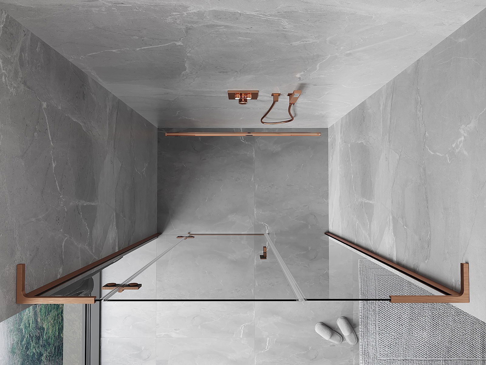 Praktická a pohodlná rukoväť je vyrobená z odolného a pevného kovu. Moderný tvar v kombinácii s povrchovou úpravou prispôsobenou farbe profilov dodáva celku moderný a štýlový vzhľad, zdôrazňujúc estetiku každej kúpeľne.