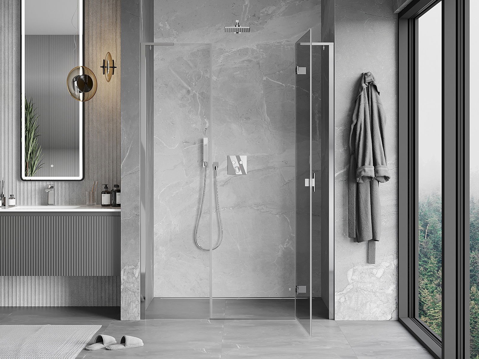 Produkt je možné podľa potreby namontovať ako na sprchovej vaničke, tak aj priamo na podlahe. Univerzálny spôsob montáže umožňuje prispôsobiť produkt rôznym typom kúpeľní a konfiguráciám priestoru.