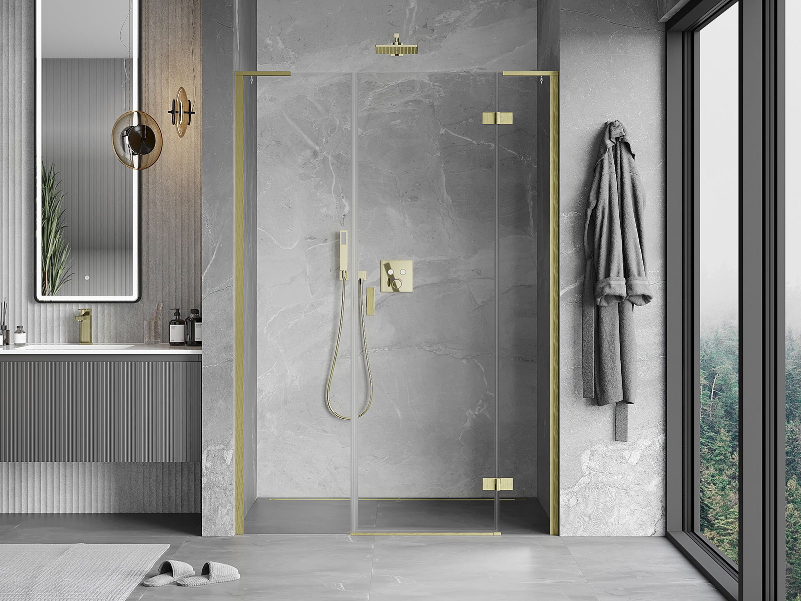 Praktická a pohodlná rukoväť je vyrobená z odolného a pevného kovu. Moderný tvar v kombinácii s povrchovou úpravou prispôsobenou farbe profilov dodáva celku moderný a štýlový vzhľad, zdôrazňujúc estetiku každej kúpeľne.