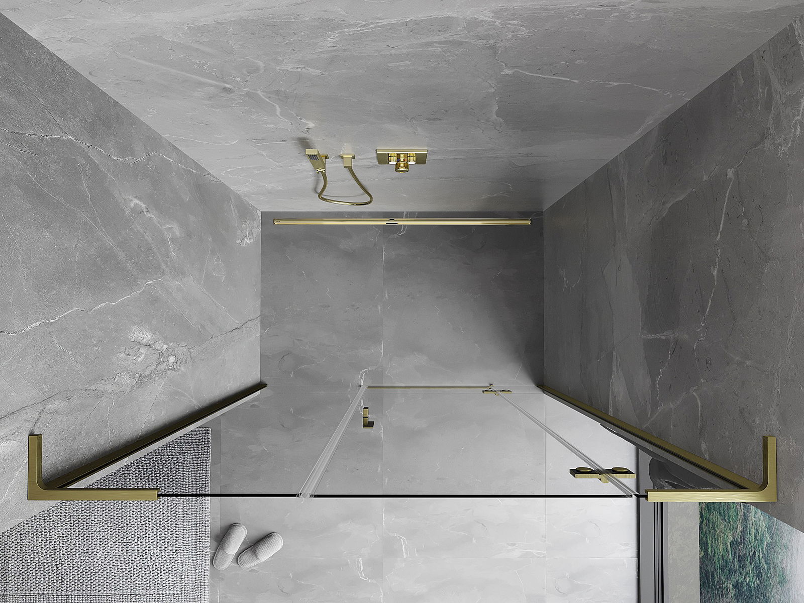 Mosadzné závesy zarovnané s povrchom skla