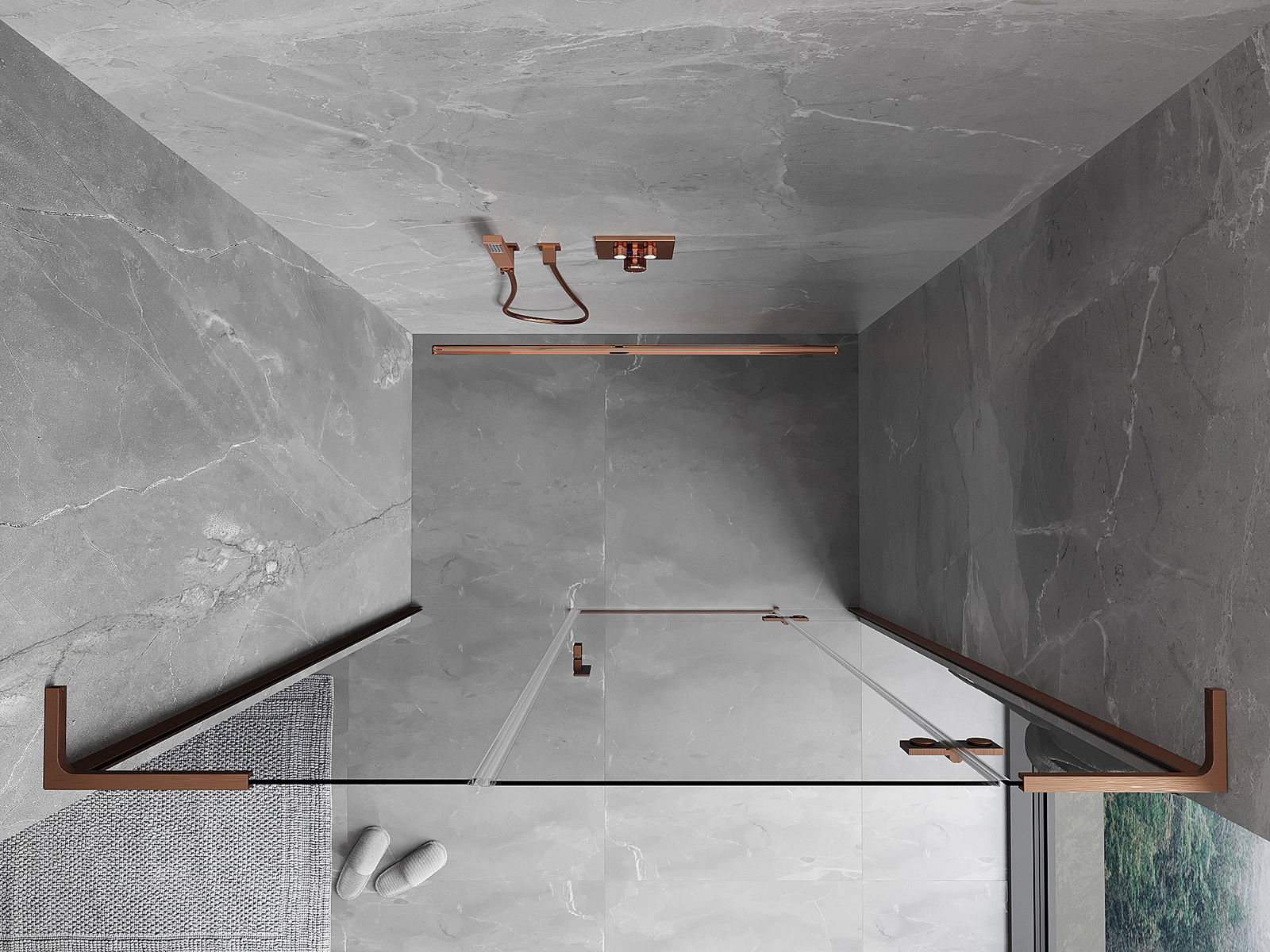 Praktická a pohodlná rukoväť je vyrobená z odolného a pevného kovu. Moderný tvar v kombinácii s povrchovou úpravou prispôsobenou farbe profilov dodáva celku moderný a štýlový vzhľad, zdôrazňujúc estetiku každej kúpeľne.