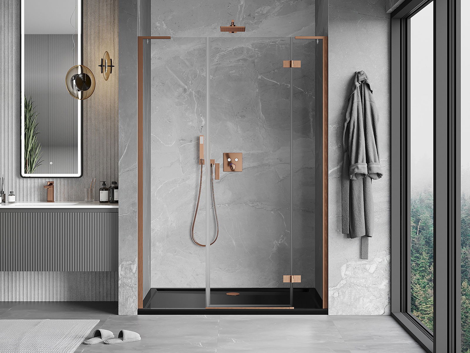 Praktická a pohodlná rukoväť je vyrobená z odolného a pevného kovu. Moderný tvar v kombinácii s povrchovou úpravou prispôsobenou farbe profilov dodáva celku moderný a štýlový vzhľad, zdôrazňujúc estetiku každej kúpeľne.