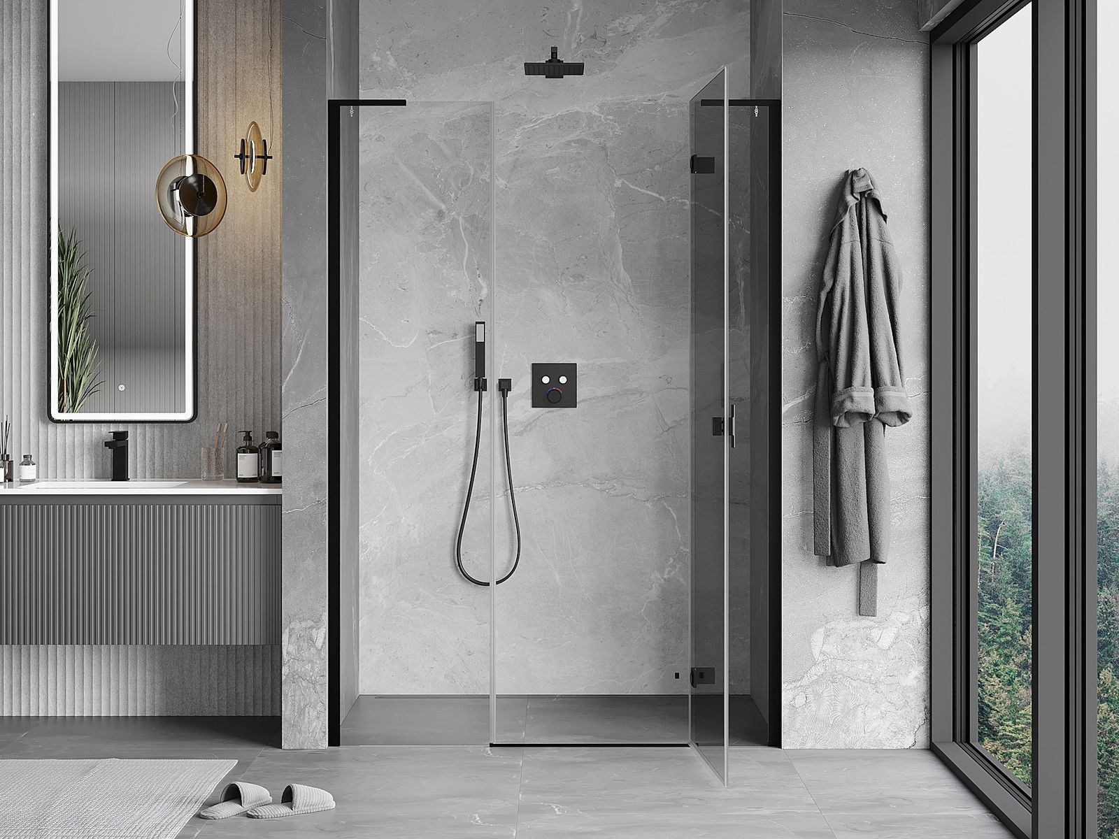 Praktická a pohodlná rukoväť je vyrobená z odolného a pevného kovu. Moderný tvar v kombinácii s povrchovou úpravou prispôsobenou farbe profilov dodáva celku moderný a štýlový vzhľad, zdôrazňujúc estetiku každej kúpeľne.