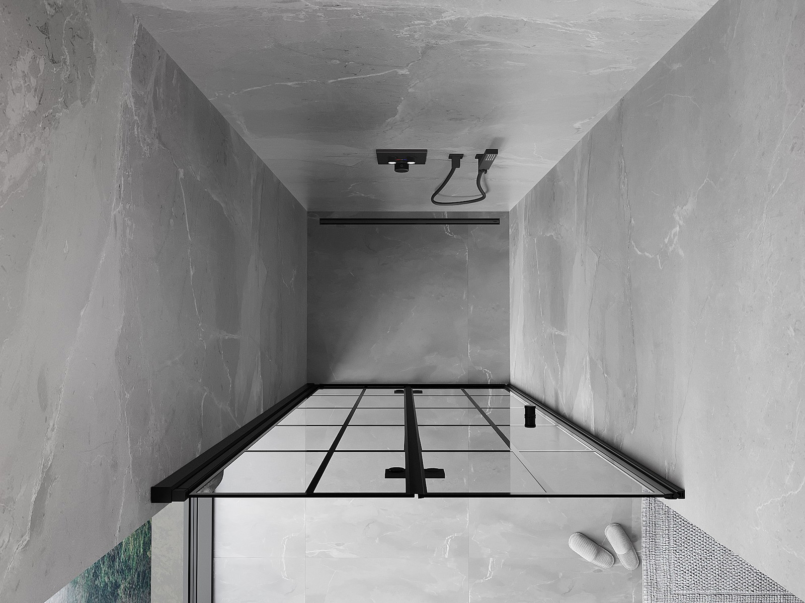Mexen Mist-F skladacie sprchové dvere ľavé 90 cm, čierna mriežka, čierne - 8A6-090-000-70-77-L