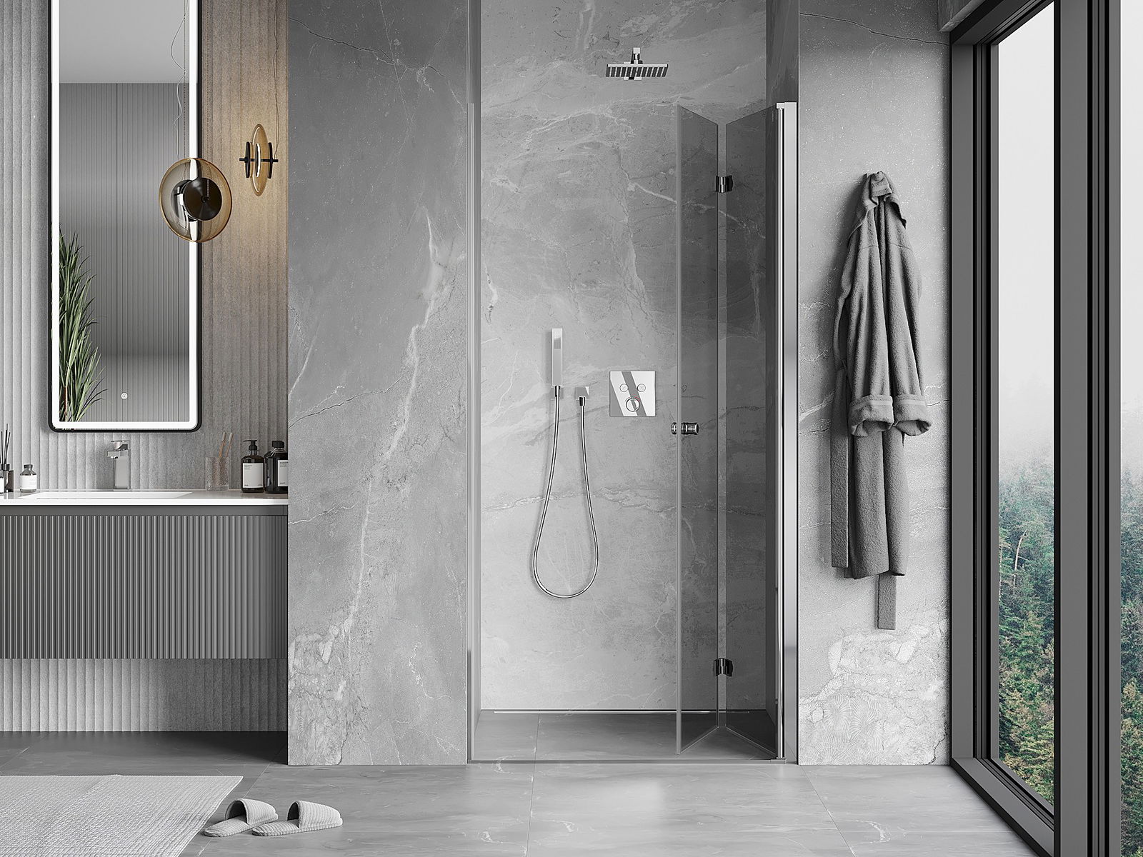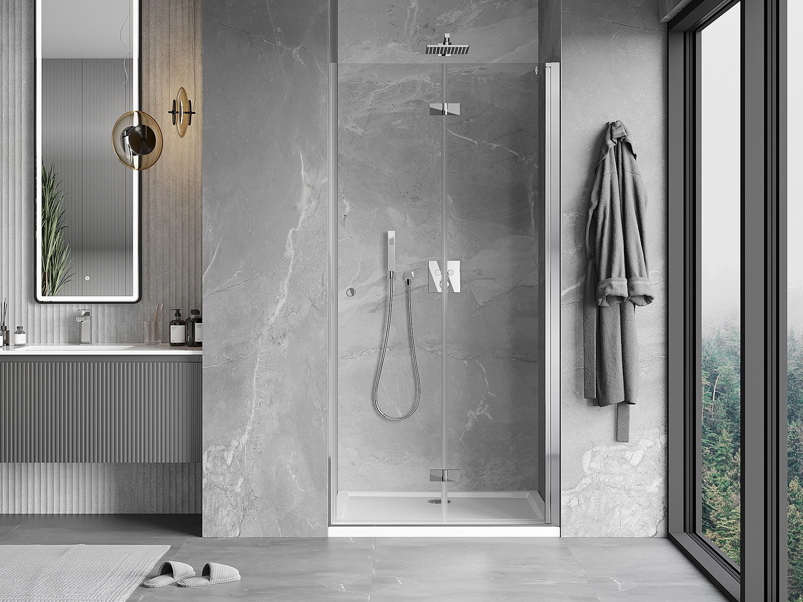 Možnosť skladania dverí, ako smerom von, tak aj smerom dnu, umožňuje získať viac priestoru počas nepoužívania sprchy. Je to ideálne riešenie pre menšie kúpeľne, maximálne využívajúce dostupnú plochu.