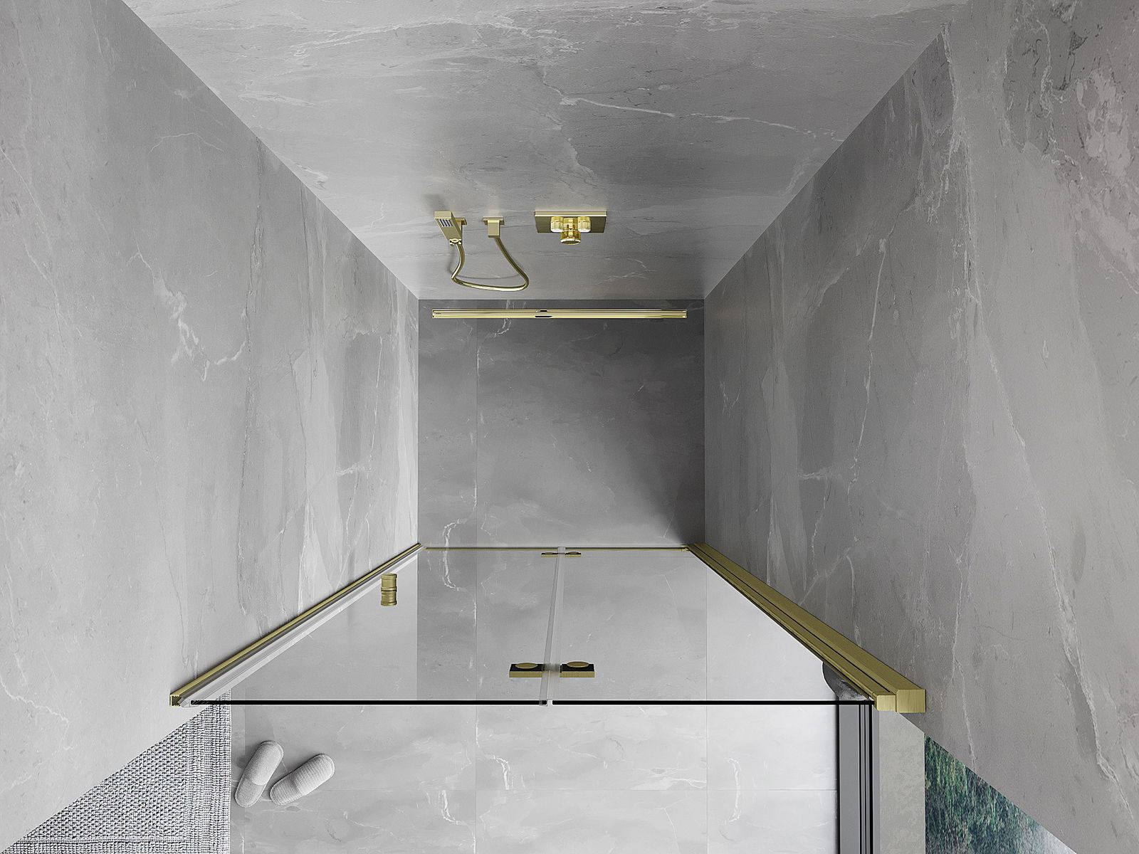 Mexen Mist-F skladacie sprchové dvere pravé 90 cm, transparentné, zlaté brúsené - 8A6-090-000-55-00-P