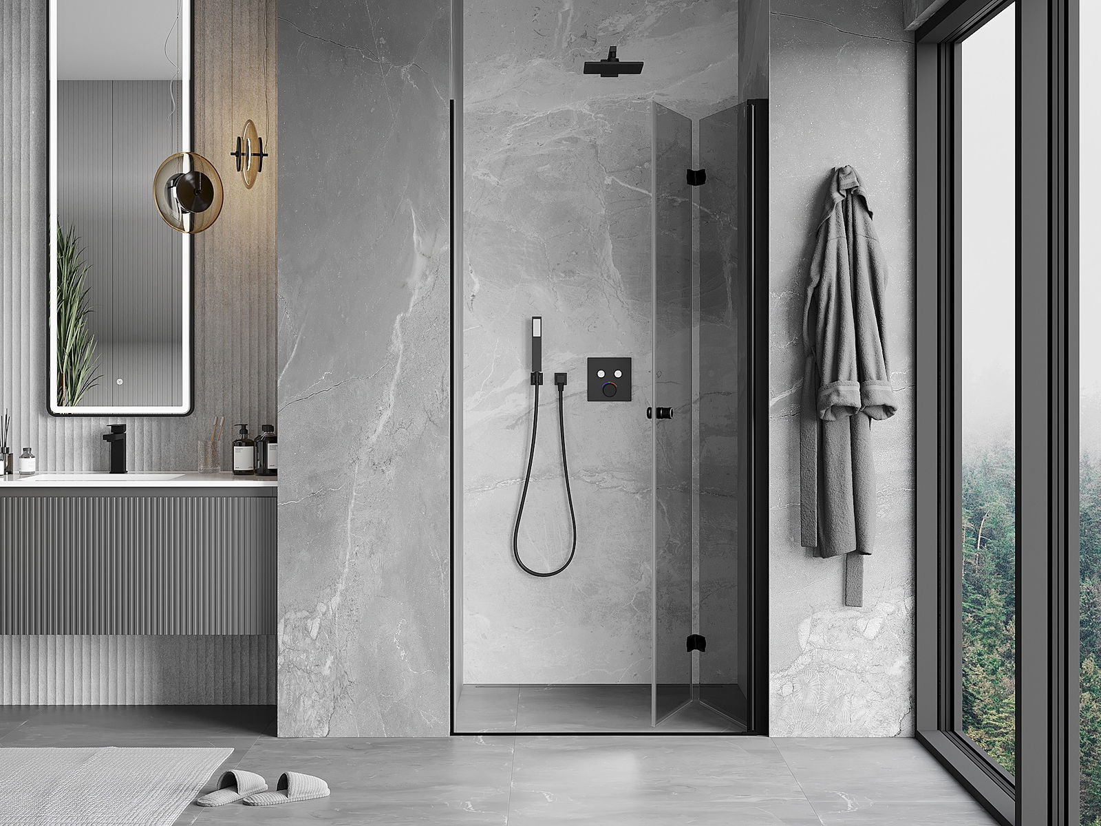 Možnosť skladania dverí, ako smerom von, tak aj smerom dnu, umožňuje získať viac priestoru počas nepoužívania sprchy. Je to ideálne riešenie pre menšie kúpeľne, maximálne využívajúce dostupnú plochu.