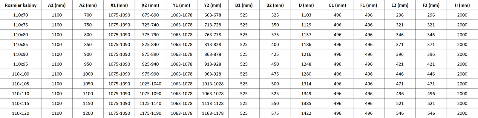 Veľkosť: 110x105 cm (ľavé dvere 110 cm, pravé dvere 105 cm)