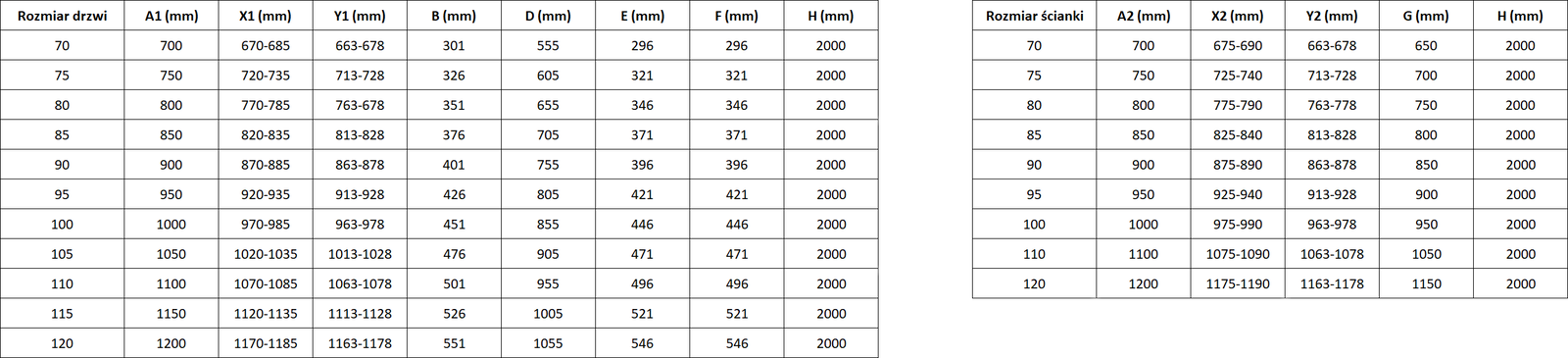 Veľkosť: 110x90 cm (pravé dvere 110 cm, stena 90 cm)