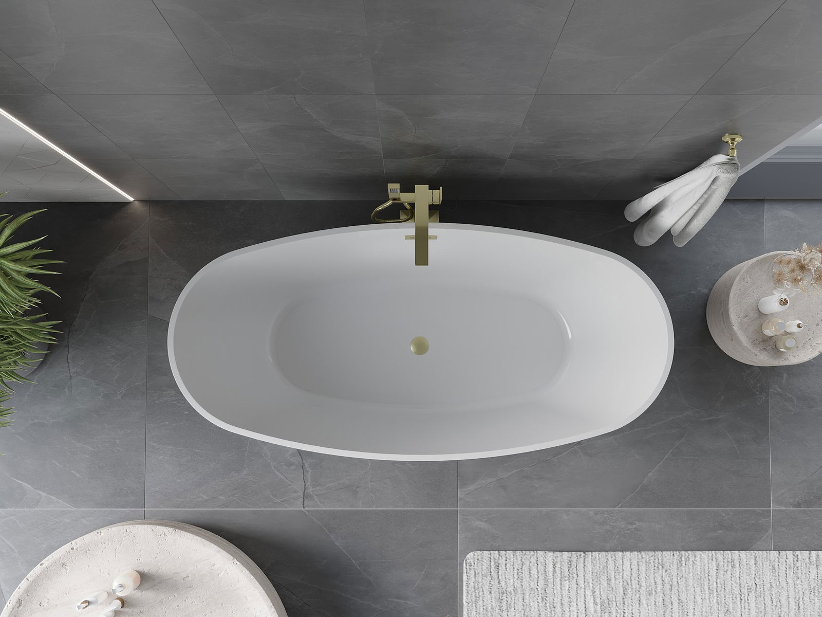 Je to moderný materiál, ktorý kombinuje elegantný vzhľad s vysokou trvanlivosťou. Je odolný proti mechanickému poškodeniu, ľahko sa čistí a je príjemný na dotyk. Transparentná forma a tenký okraj vane jej dodávajú ľahkosť a unikátny charakter, čím vytvárajú efektný prvok v usporiadaní kúpeľne.