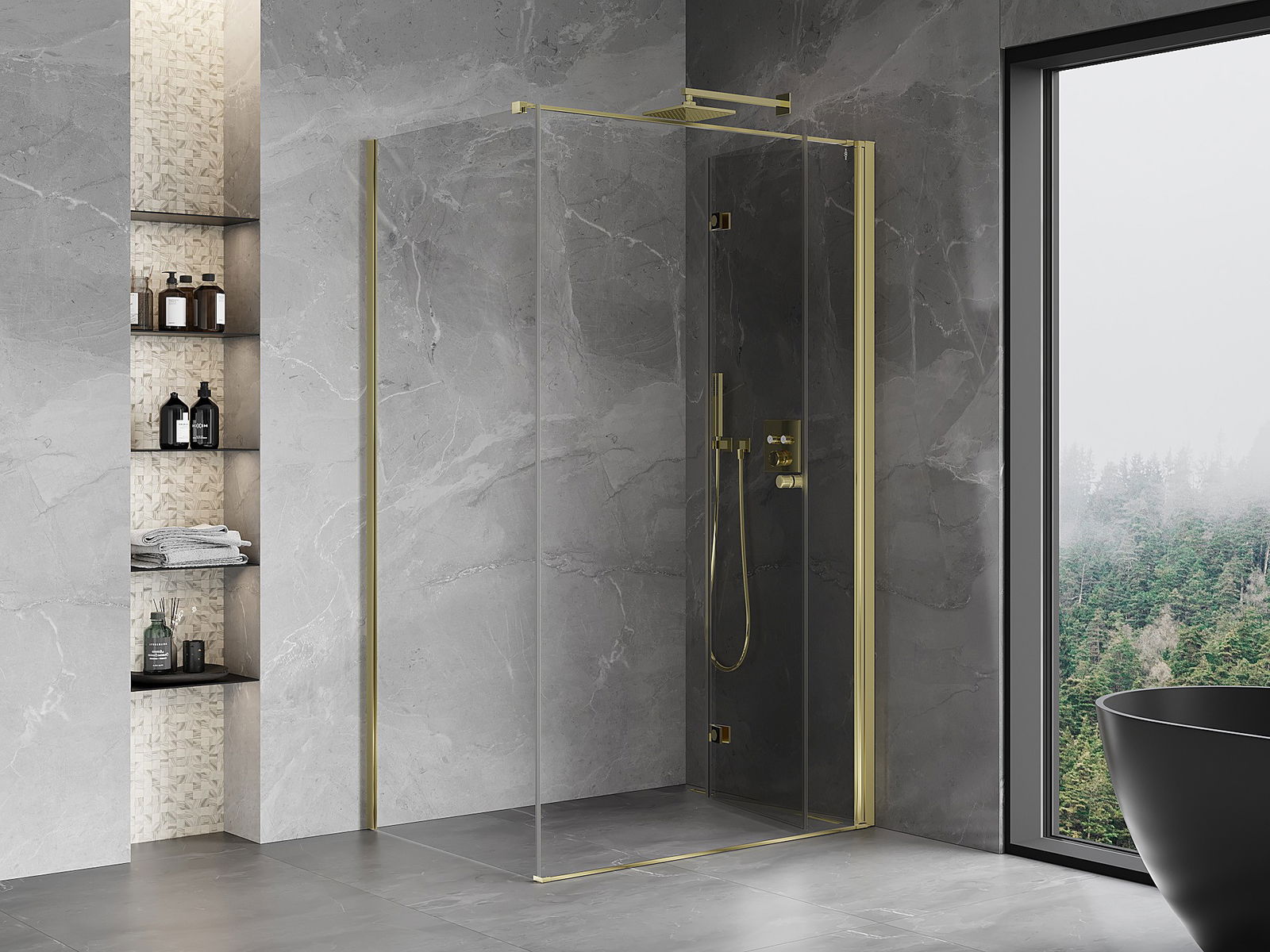 Mexen Mist-F skladacia sprchová kabína pravá 120 x 85 cm, transparentná, zlatá - 8A6T-120-085-50-00-P