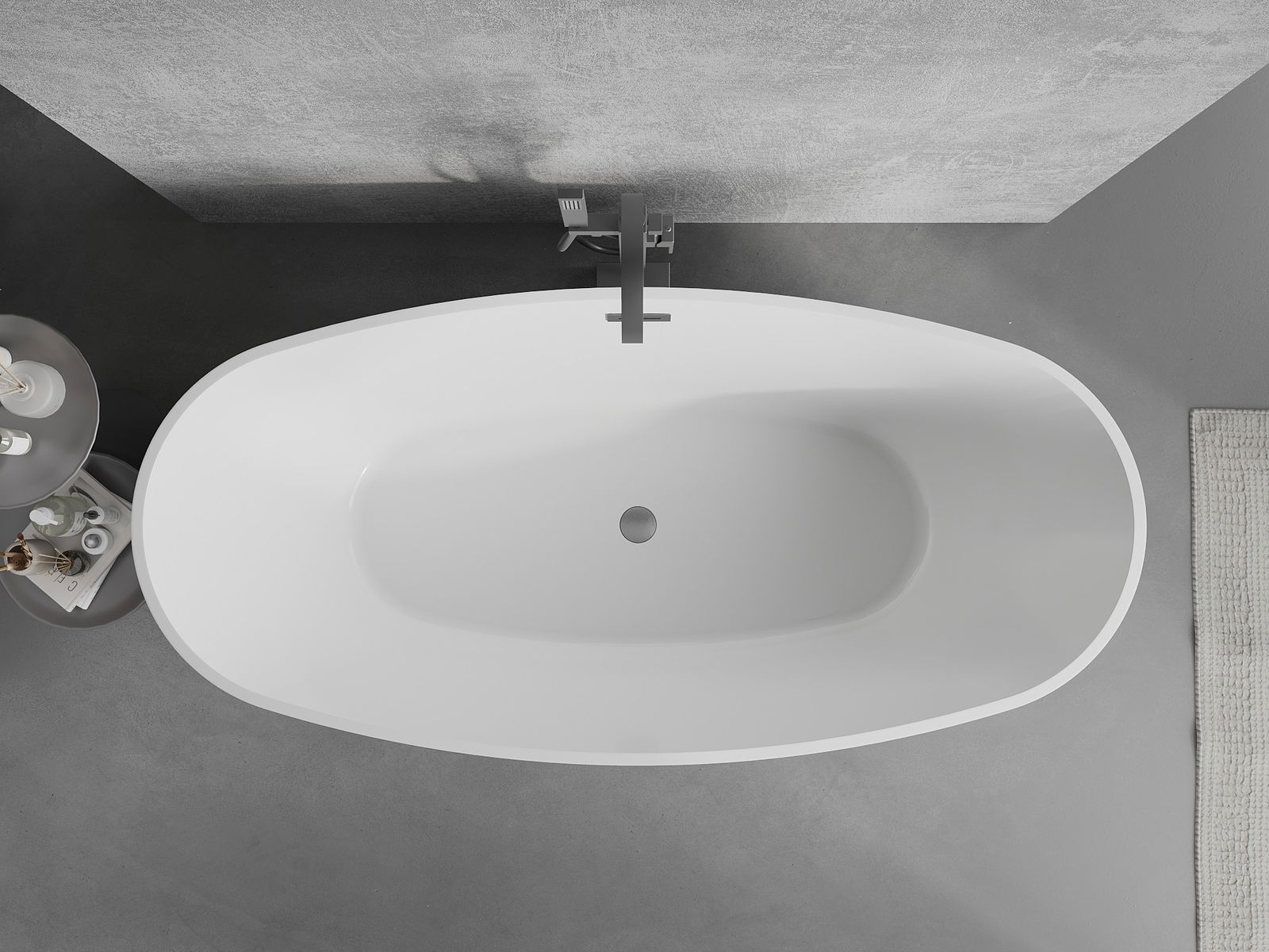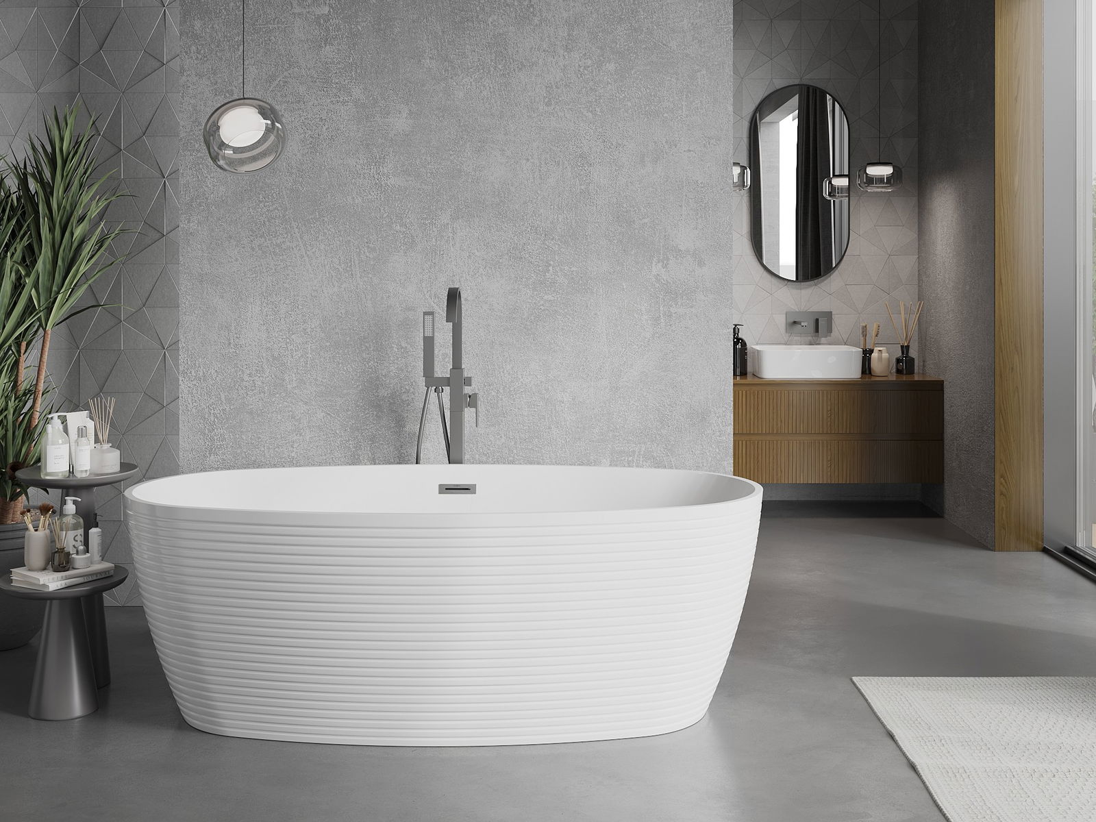 Je to moderný materiál, ktorý kombinuje elegantný vzhľad s vysokou trvanlivosťou. Je odolný proti mechanickému poškodeniu, ľahko sa čistí a je príjemný na dotyk. Transparentná forma a tenký okraj vane jej dodávajú ľahkosť a unikátny charakter, čím vytvárajú efektný prvok v usporiadaní kúpeľne.
