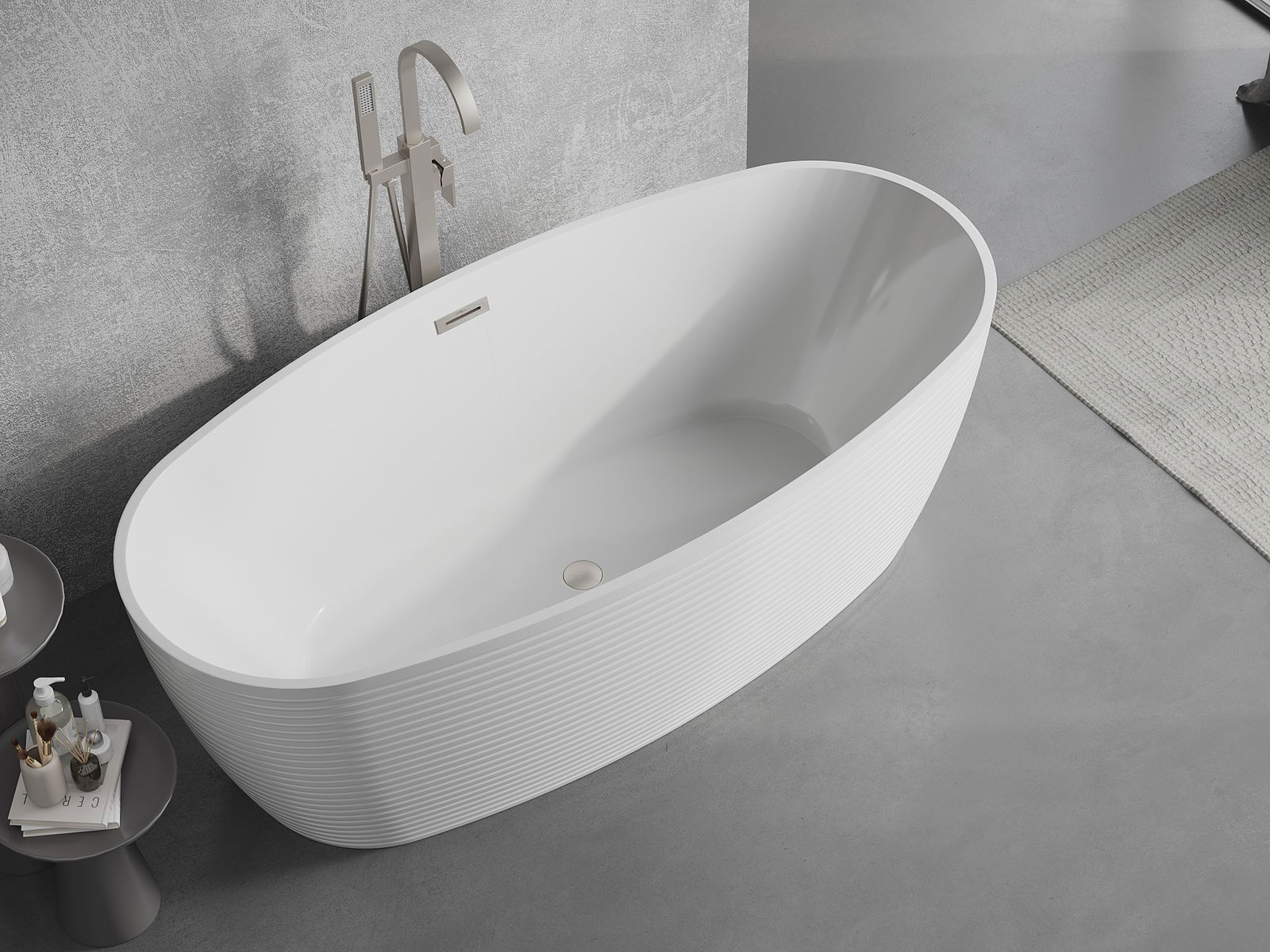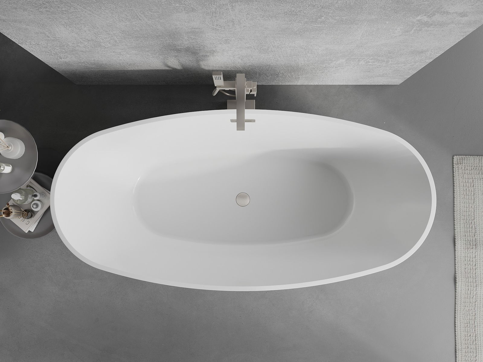Je to moderný materiál, ktorý kombinuje elegantný vzhľad s vysokou trvanlivosťou. Je odolný proti mechanickému poškodeniu, ľahko sa čistí a je príjemný na dotyk. Transparentná forma a tenký okraj vane jej dodávajú ľahkosť a unikátny charakter, čím vytvárajú efektný prvok v usporiadaní kúpeľne.