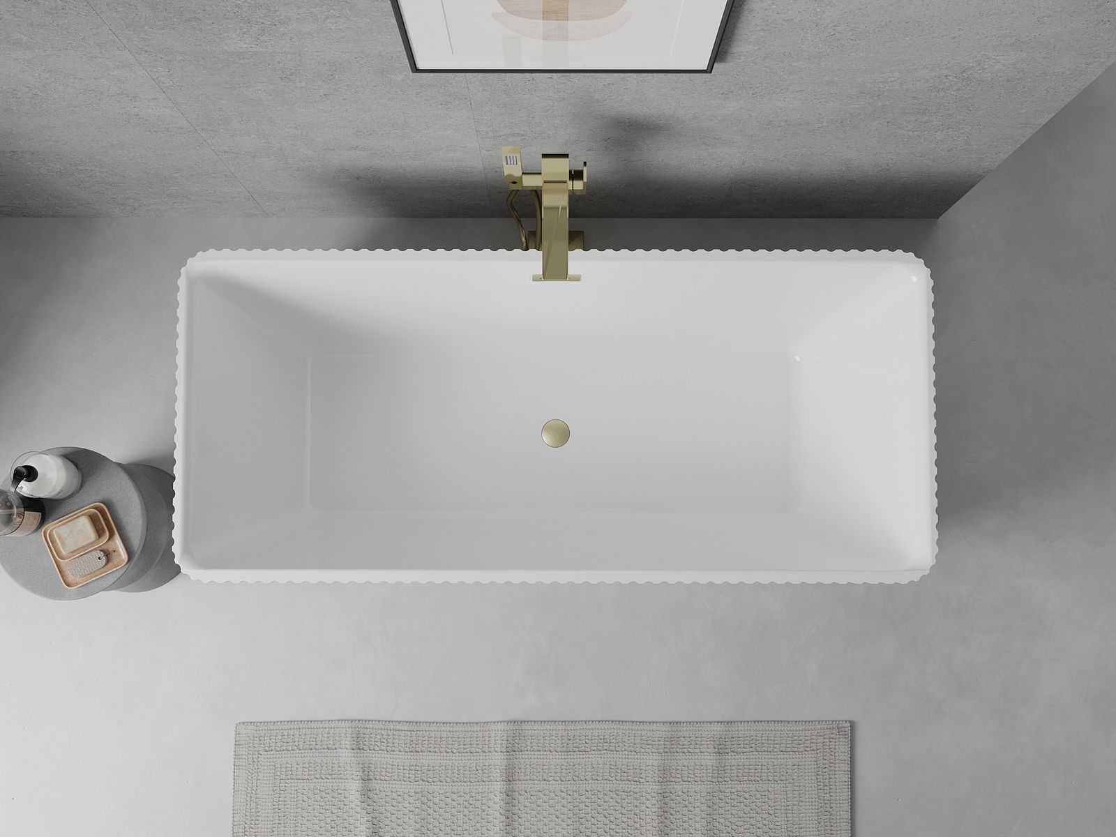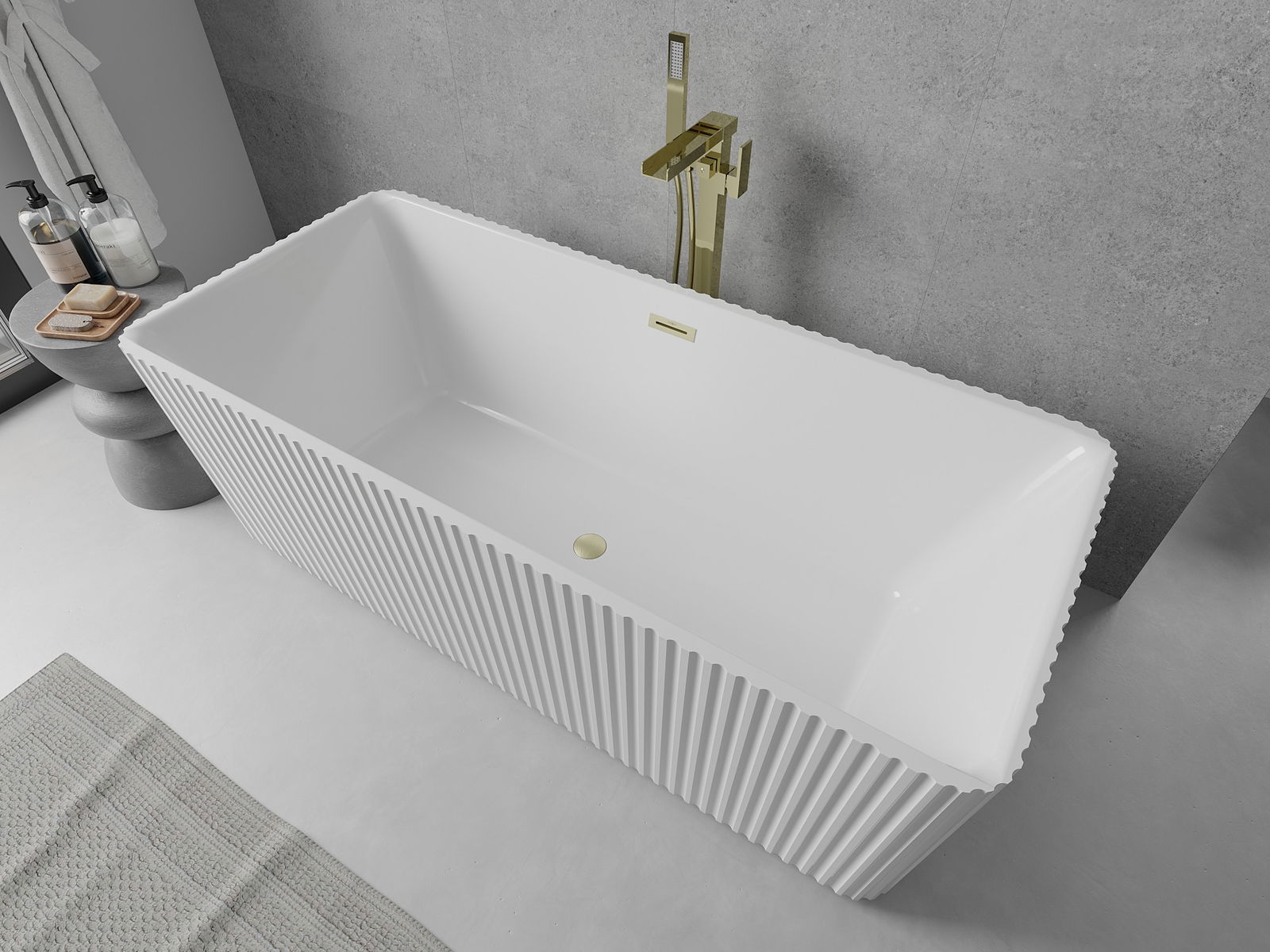 Mexen Nila voľne stojaca ryhovaná vaňa 170 x 75 cm, biela, prepad zlatý brúsený - 52841708000-55