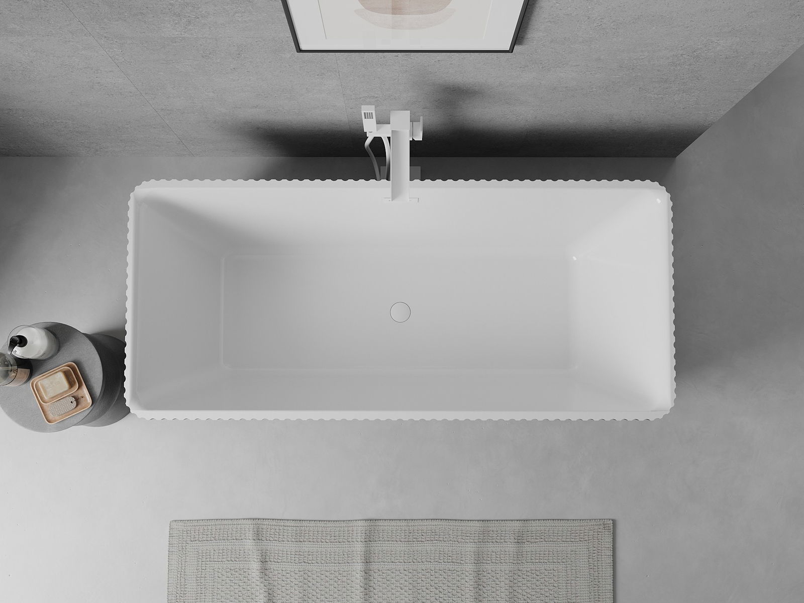 Je to moderný materiál, ktorý kombinuje elegantný vzhľad s vysokou trvanlivosťou. Je odolný proti mechanickému poškodeniu, ľahko sa čistí a je príjemný na dotyk. Transparentná forma a tenký okraj vane jej dodávajú ľahkosť a unikátny charakter, čím vytvárajú efektný prvok v usporiadaní kúpeľne.