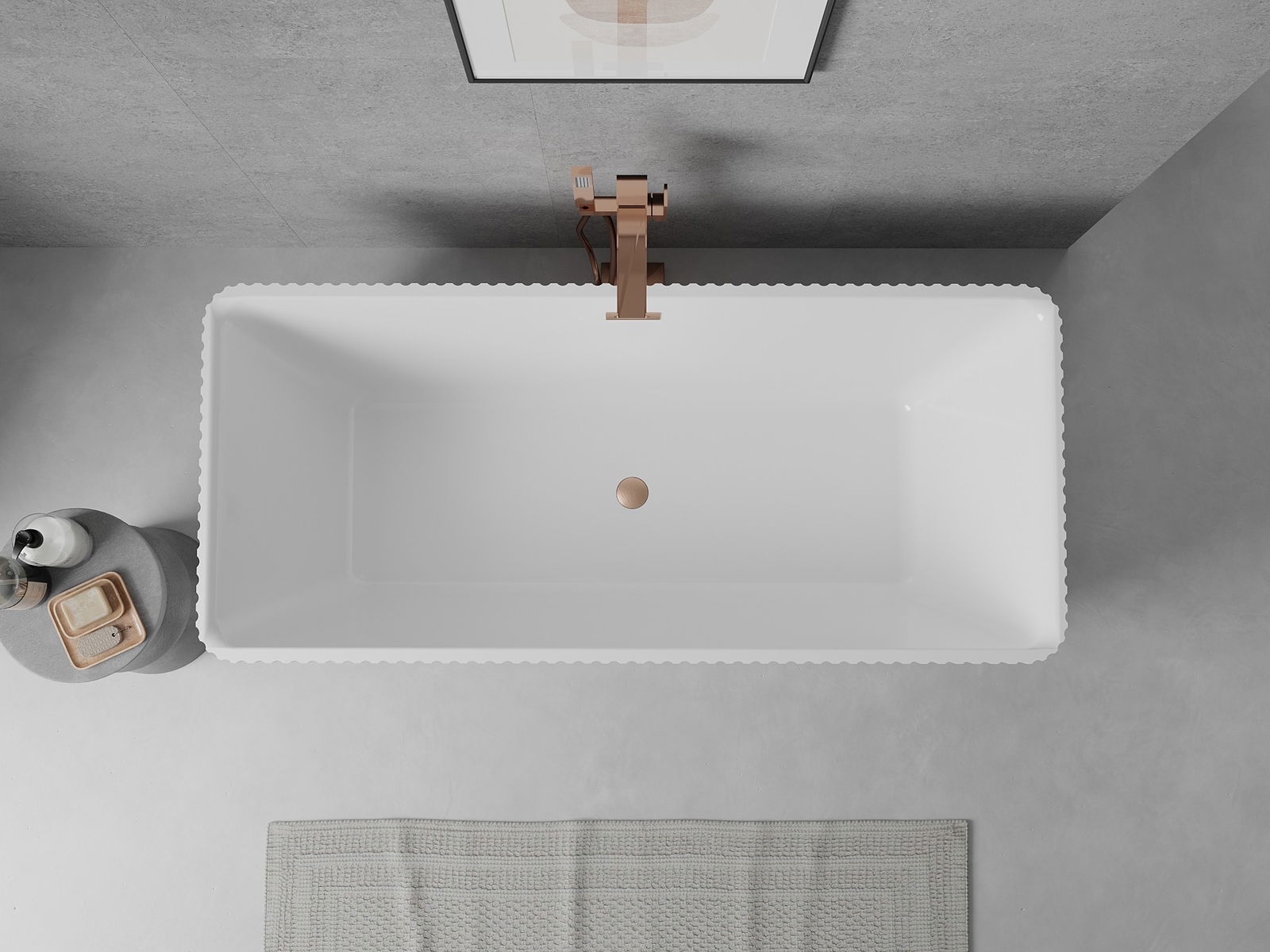 Je to moderný materiál, ktorý kombinuje elegantný vzhľad s vysokou trvanlivosťou. Je odolný proti mechanickému poškodeniu, ľahko sa čistí a je príjemný na dotyk. Transparentná forma a tenký okraj vane jej dodávajú ľahkosť a unikátny charakter, čím vytvárajú efektný prvok v usporiadaní kúpeľne.