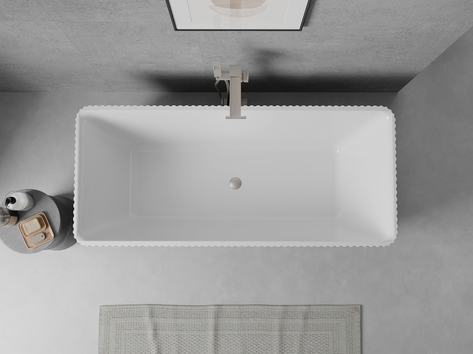Je to moderný materiál, ktorý kombinuje elegantný vzhľad s vysokou trvanlivosťou. Je odolný proti mechanickému poškodeniu, ľahko sa čistí a je príjemný na dotyk. Transparentná forma a tenký okraj vane jej dodávajú ľahkosť a unikátny charakter, čím vytvárajú efektný prvok v usporiadaní kúpeľne.