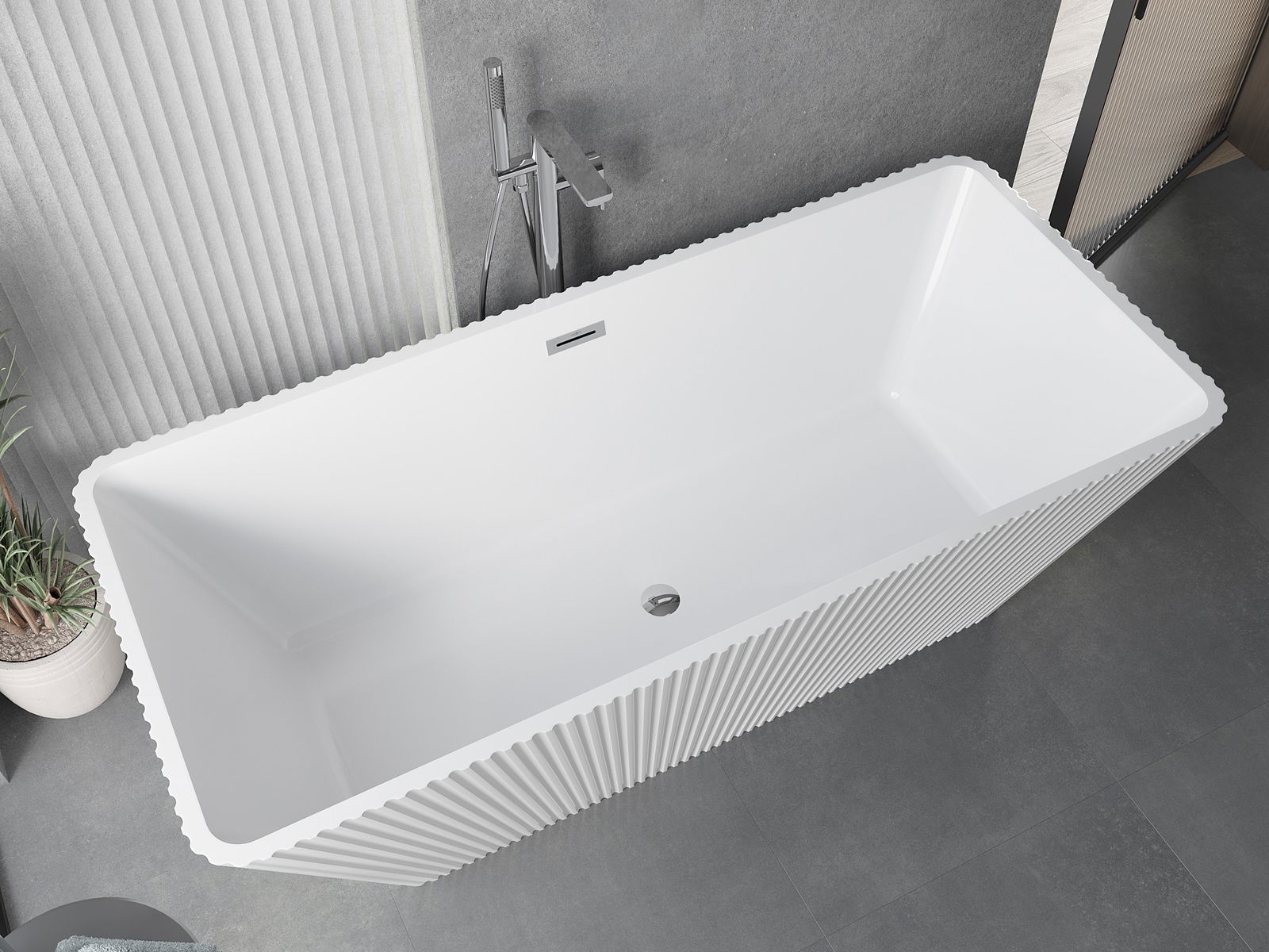 Je to moderný materiál, ktorý kombinuje elegantný vzhľad s vysokou trvanlivosťou. Je odolný proti mechanickému poškodeniu, ľahko sa čistí a je príjemný na dotyk. Transparentná forma a tenký okraj vane jej dodávajú ľahkosť a unikátny charakter, čím vytvárajú efektný prvok v usporiadaní kúpeľne.