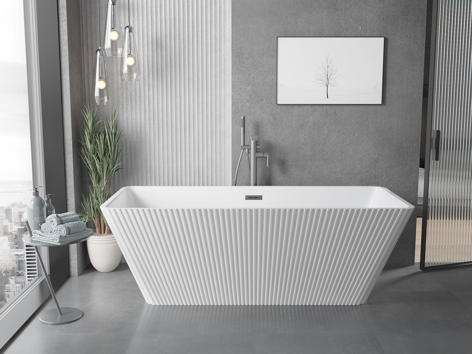 Je to moderný materiál, ktorý kombinuje elegantný vzhľad s vysokou trvanlivosťou. Je odolný proti mechanickému poškodeniu, ľahko sa čistí a je príjemný na dotyk. Transparentná forma a tenký okraj vane jej dodávajú ľahkosť a unikátny charakter, čím vytvárajú efektný prvok v usporiadaní kúpeľne.